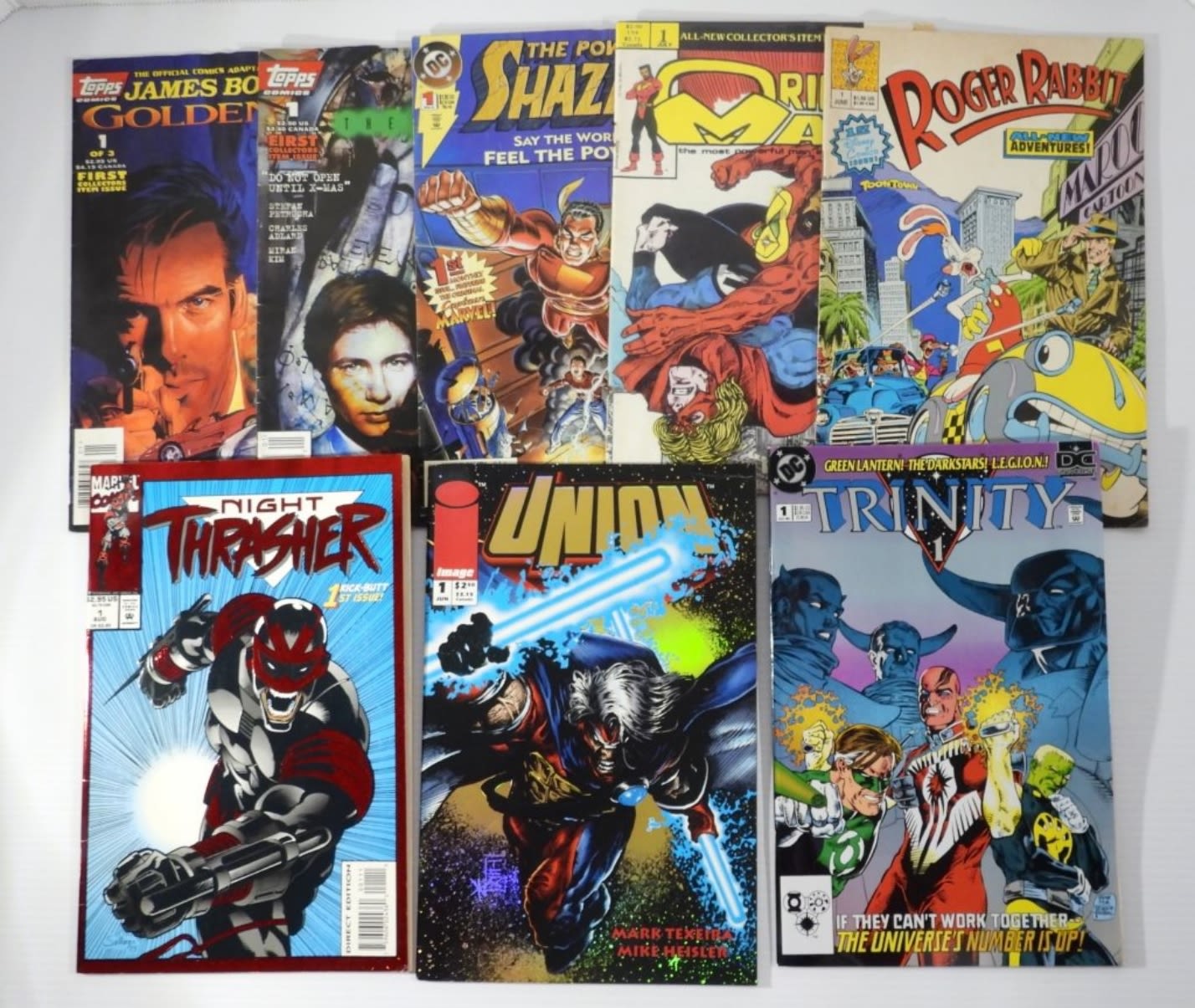 SHAZAM, ORIGINAL MAN, X FILES, JAMES BOND, NIGHT THRASHER, TRINITY – MOSTLY FINE or BETTER