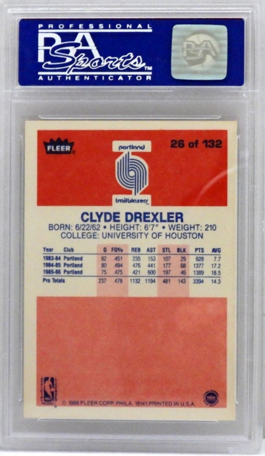 1986 FLEER CLYDE DREXLER BASKETBALL CARD #36 GRADED BY PSA 8 NM-MT