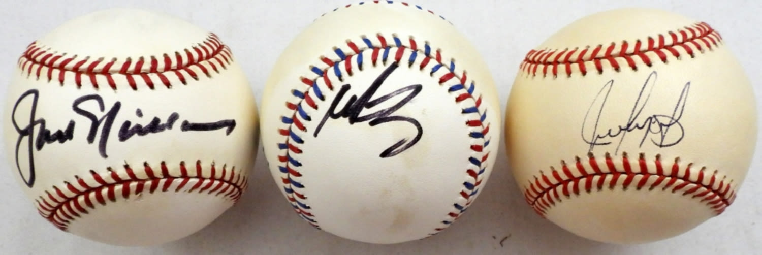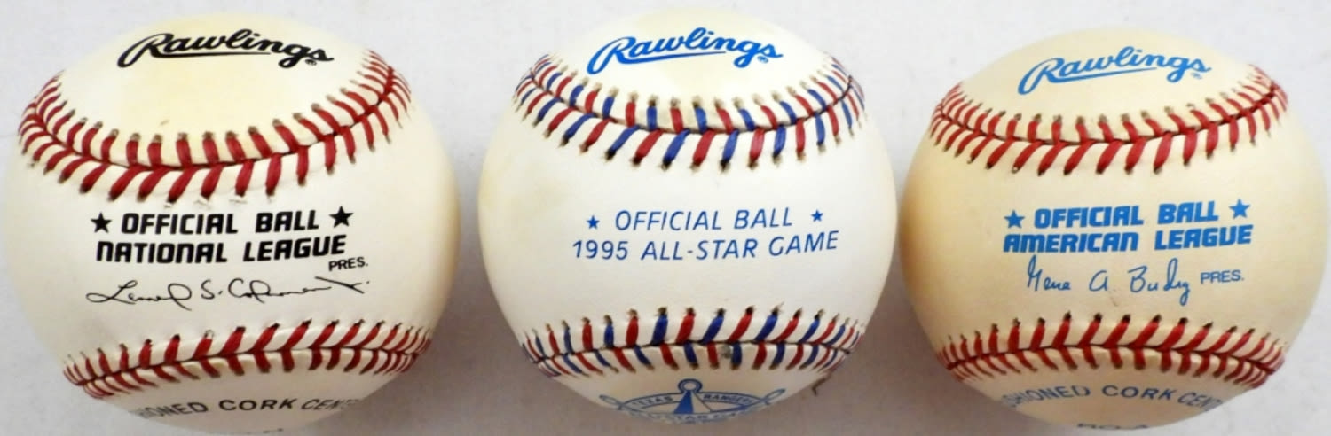 JACK NICKLAUS NATIONAL LEAGUE BALL, MANNY RAMIREZ OFFICIAL 1995 ALL-STAR GAME BALL, & JUAN GONZALEZ OFFICIAL AMERICAN LEAGUE BALL
