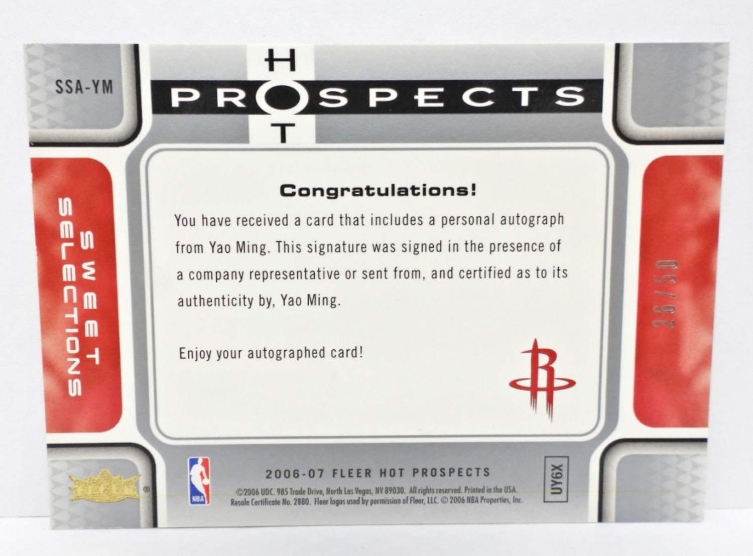 #26/50 FLEER 2006-2007 HOT PROSPECTS, SWEET SELETIONS