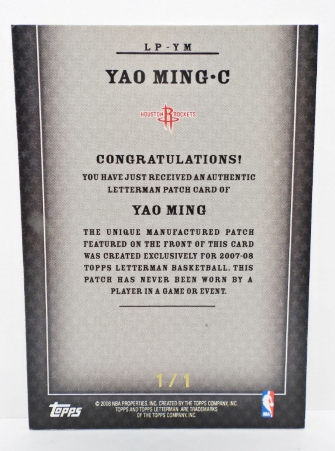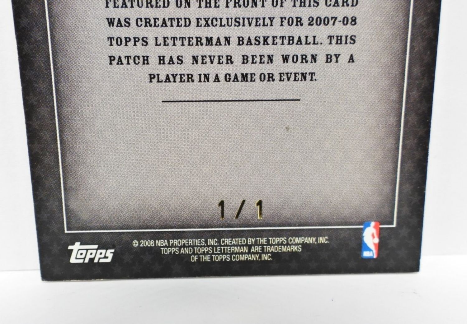 #1/1 TOPPS 2008 AUTHENTIC LETTERMAN PATCH CARD