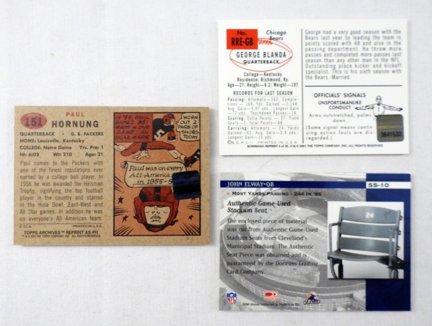 PAUL HORNUNG, JOHN ELWAY, GEORGE BLANDA