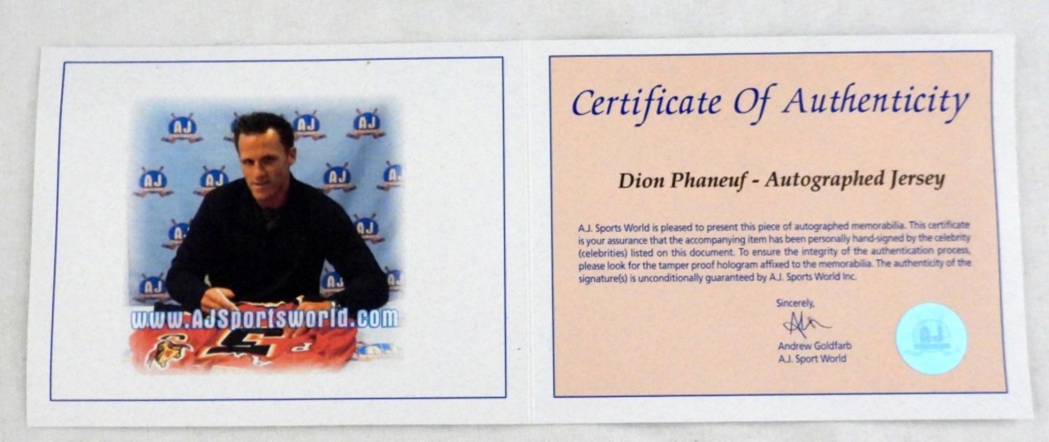 DION PHANEUF #3 TORONTO MAPLE LEAFS AUTOGRAPHED JERSEY – REEBOK SIZE XL – WITH COA BY AJ SPORTS WORLD