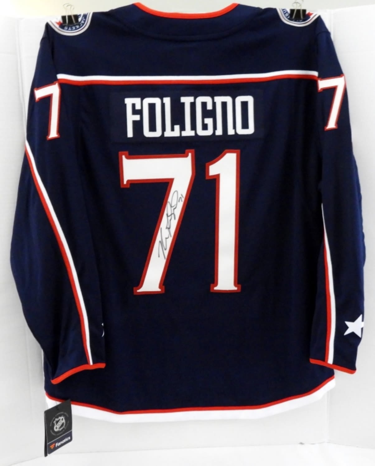 NICK FOLIGNO #71 COLUMBUS BLUE JACKETS AUTOGRAPHED HOCKEY JERSEY – WITH COA BY DAVE & ADAM’S