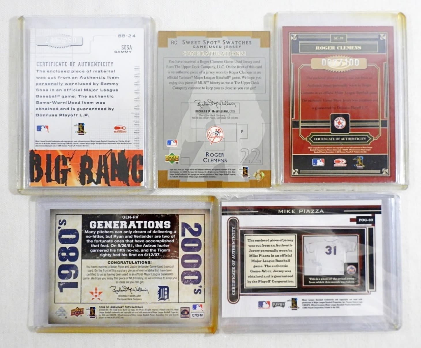 SAMMY SOSA, ROGER CLEMENS, NOLAN RYAN/JUSTIN VERLANDER DUAL, MIKE PIAZZA, ROGER CLEMENS