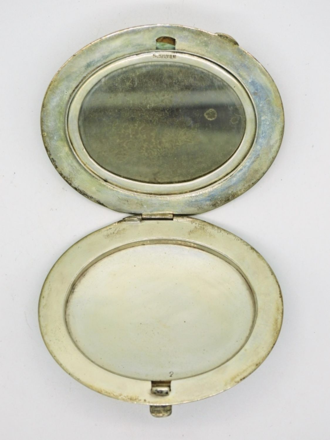 Measures 3 inches across and features 5 small ruby gemstones. Sterling silver with gold map inlay. Very unique! DWT 58
