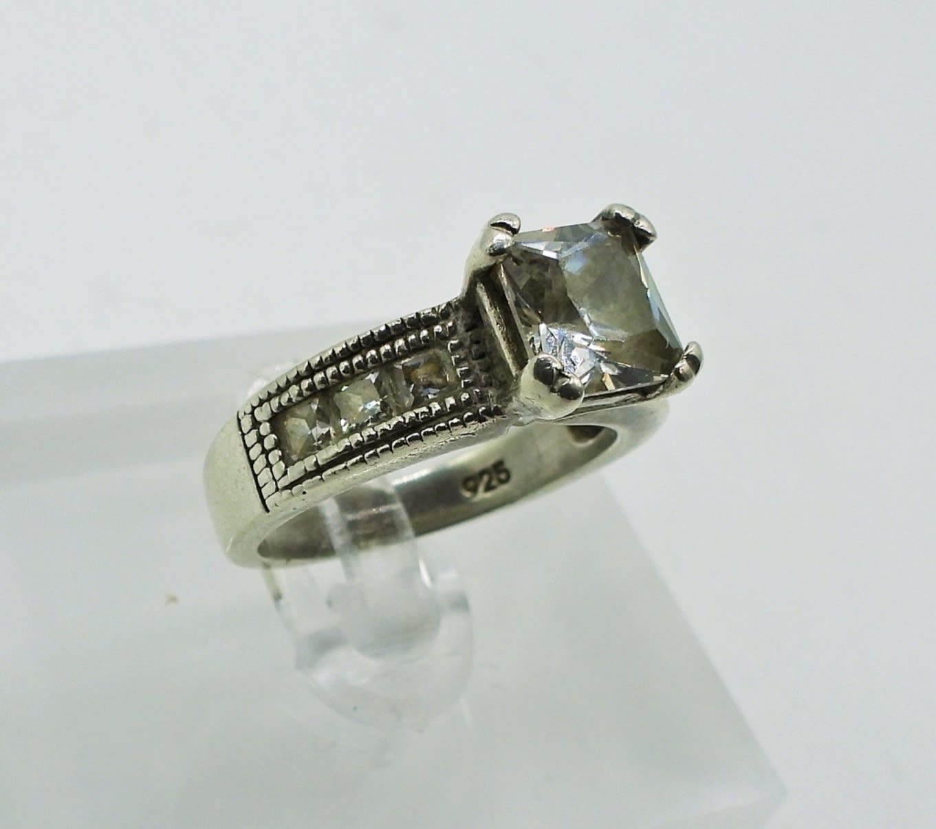 Ring size 6.5, white rhinestone tennis bracelet, and two pairs of stud back earrings. DWT 15.5