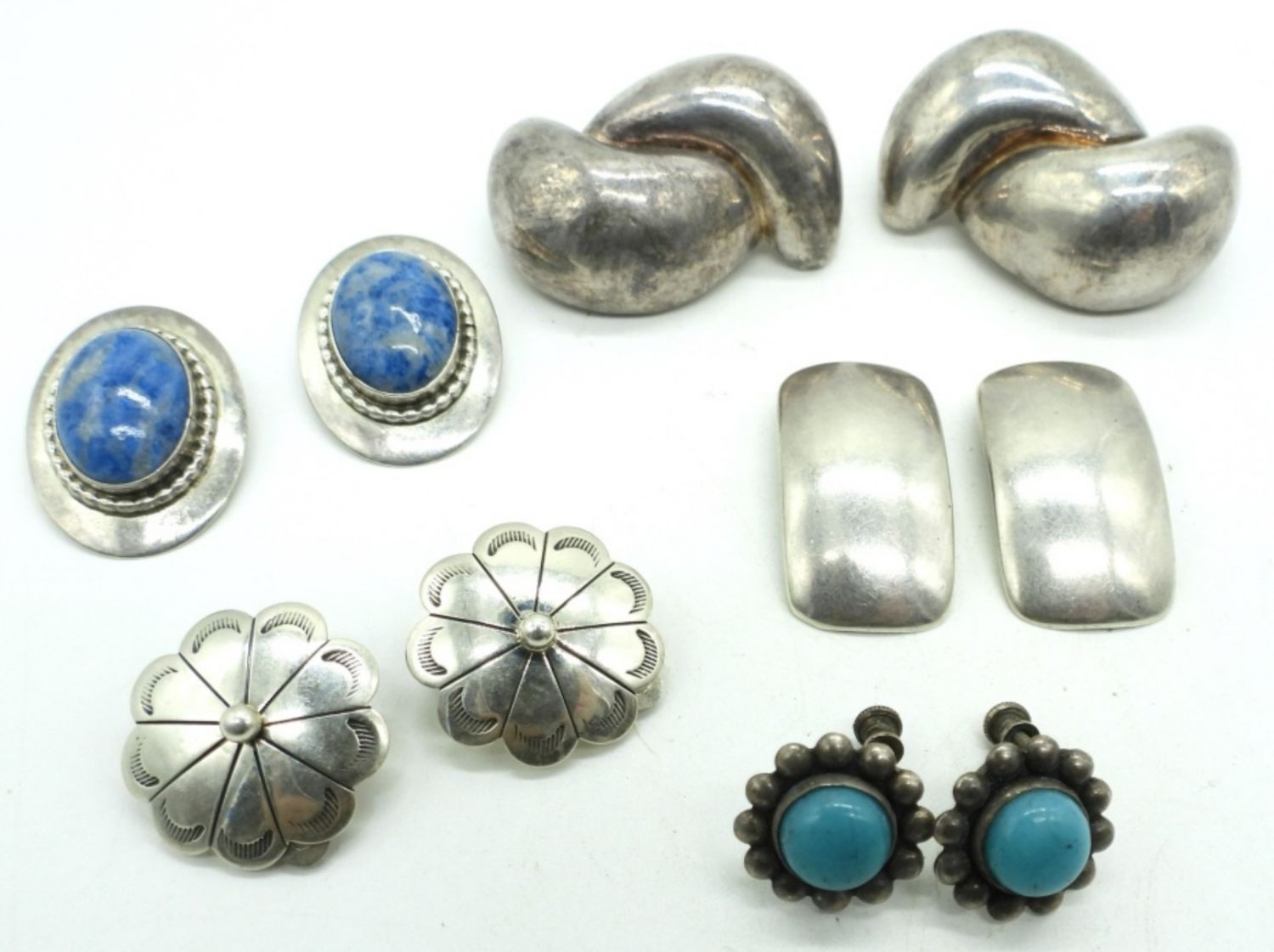 39.2DWT, 1-RECTANGLE PAIR STAMPED MEXICO TC-60,3- STAMPED STERLING, 1 LARGER PAIR STAMPED 925