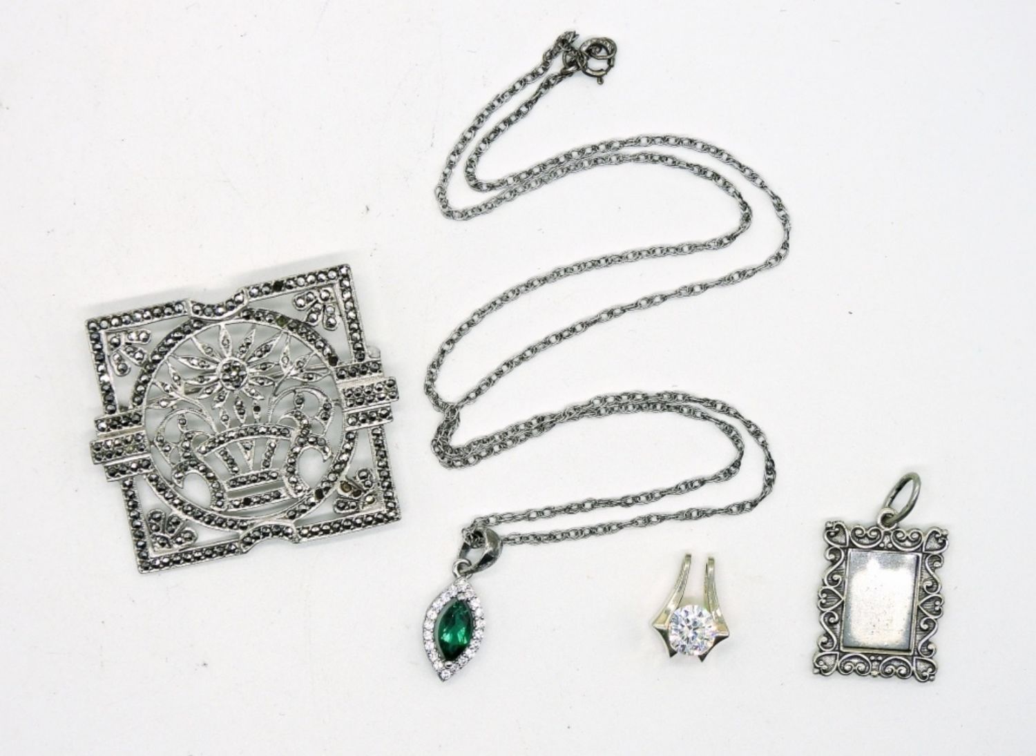 Sterling Jewelry Set w/ Marcasite Broach