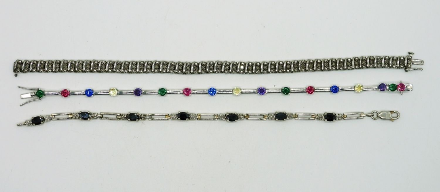 Sterling Silver, 7 inch Tennis Bracelets with Colorful Gemstones. 19.3DWT