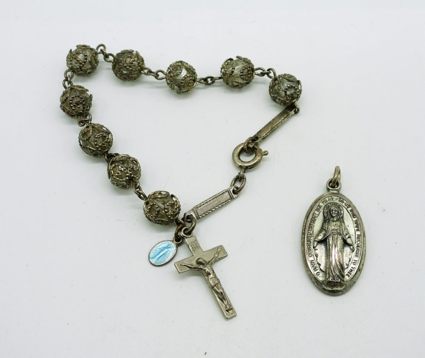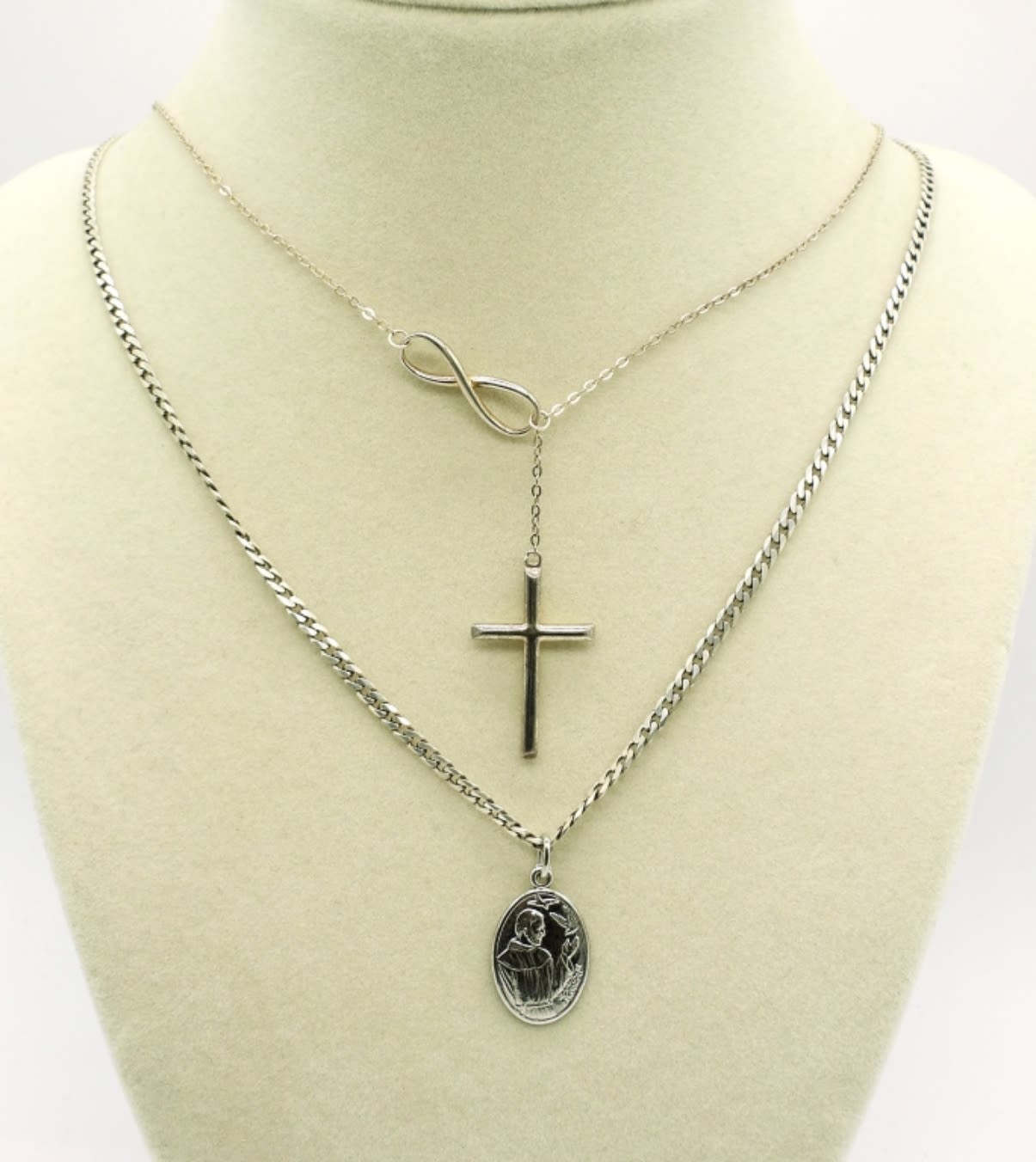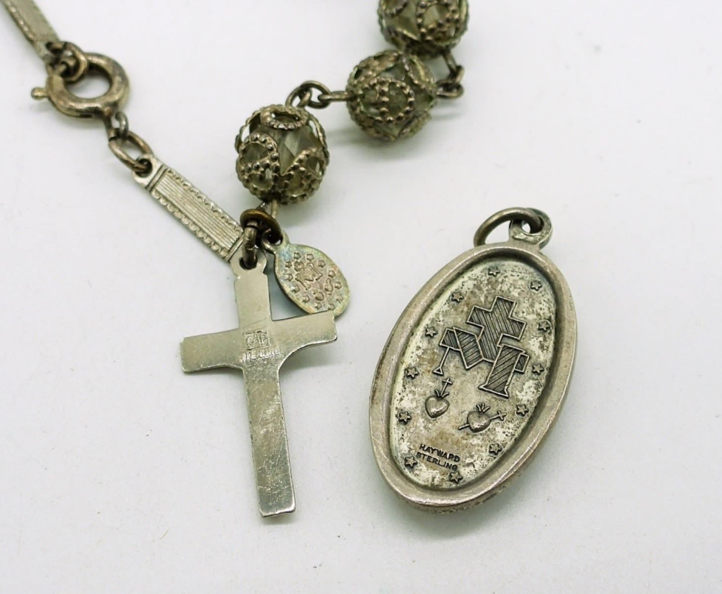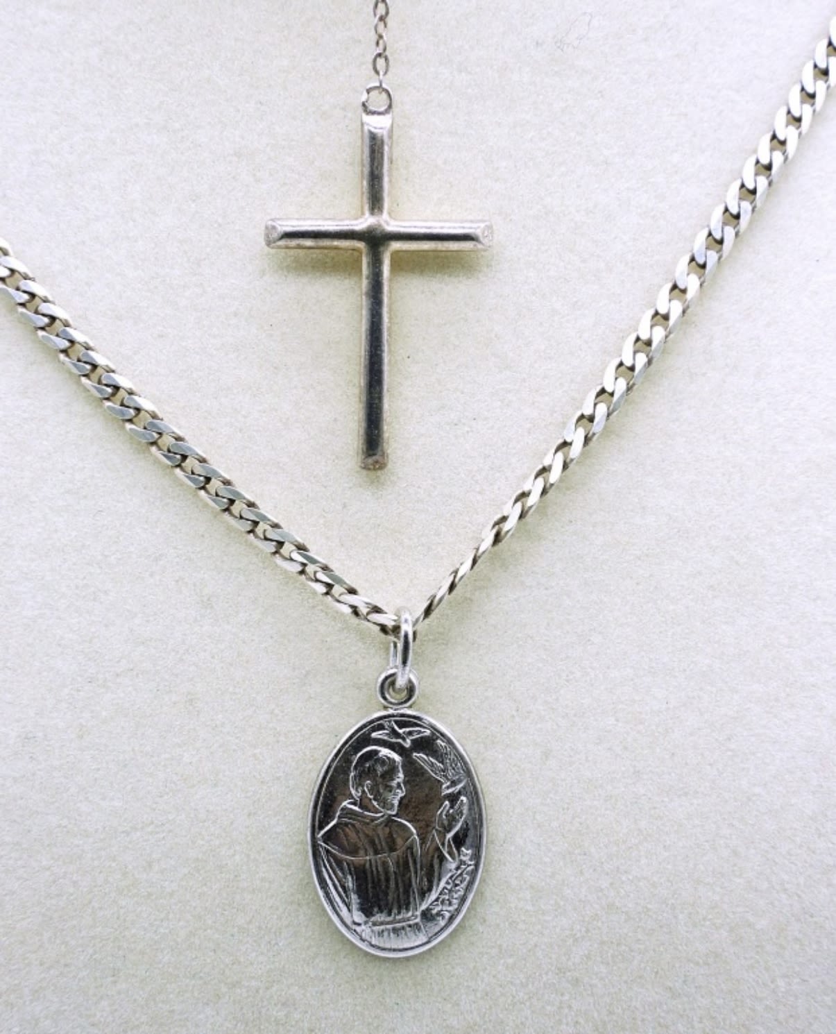 Two Sterling Necklaces, 24 in & 18 in. One Sterling Beaded Cross Bracelet (Needs an O Ring) and Sterling Silver Pendant. 19DWT