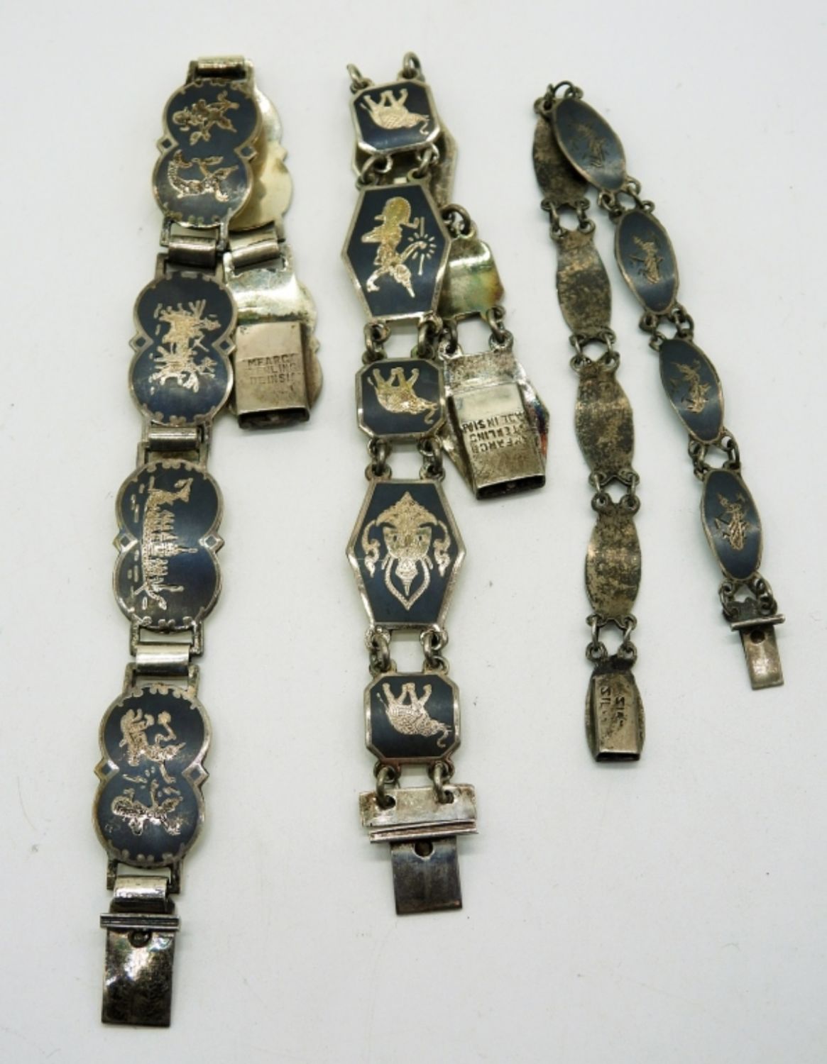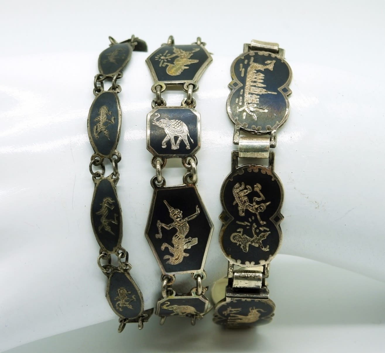 Three Sterling Silver Siam Bracelets, 7 inch. 27 DWT