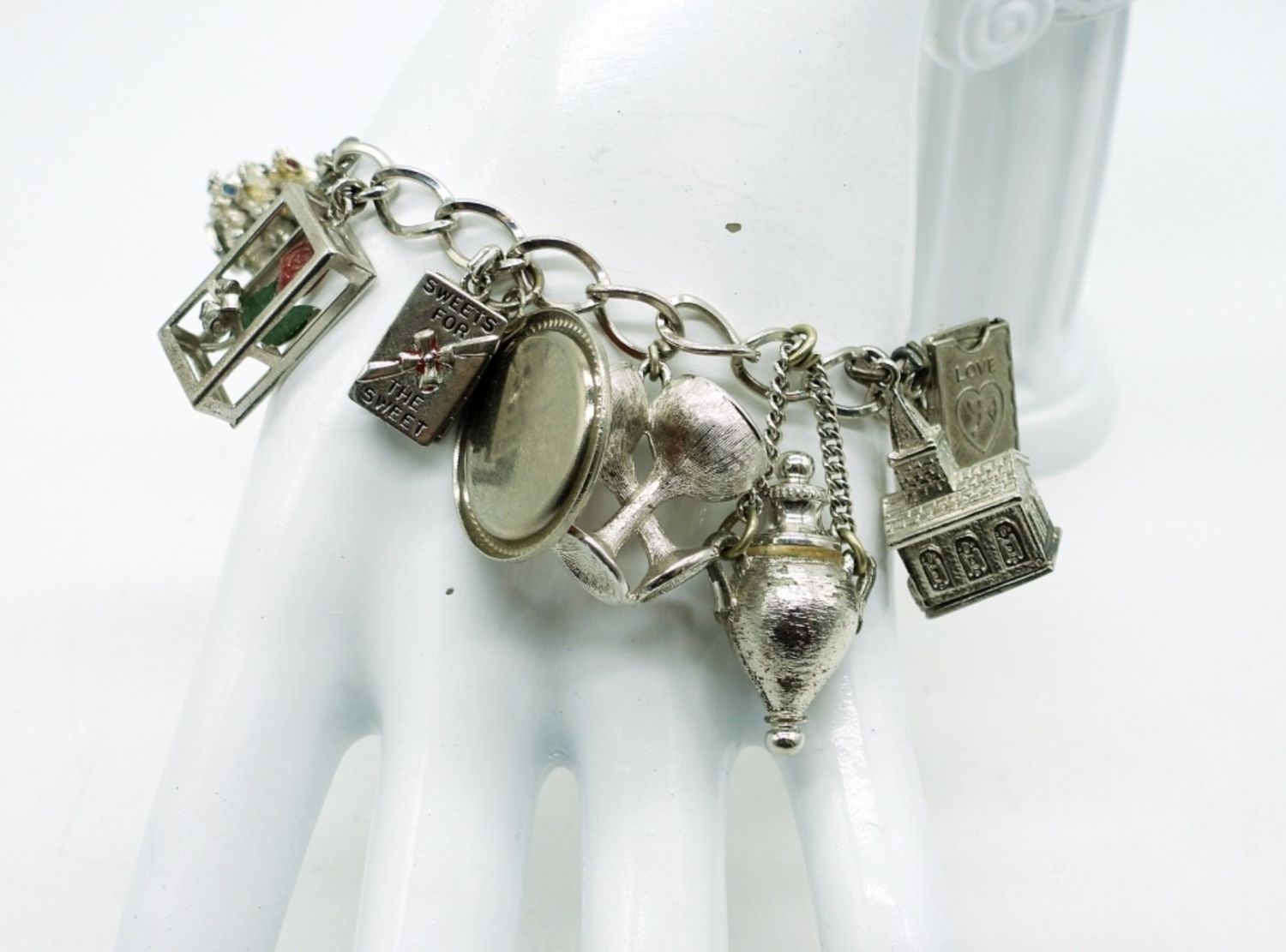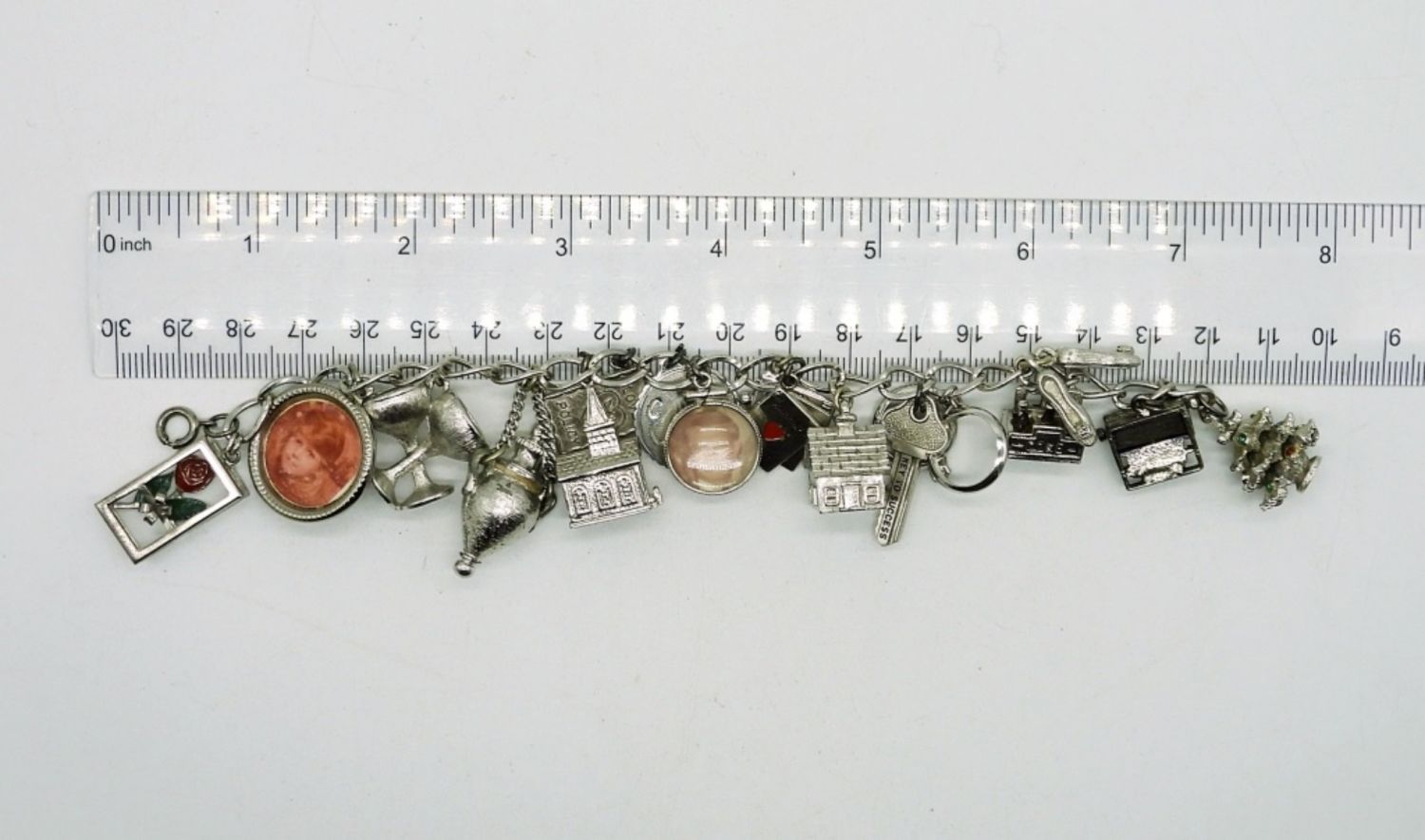 Vintage Sterling Silver 7″ Charm Bracelet with 18 Charms in great condition. (49.8 DWT)