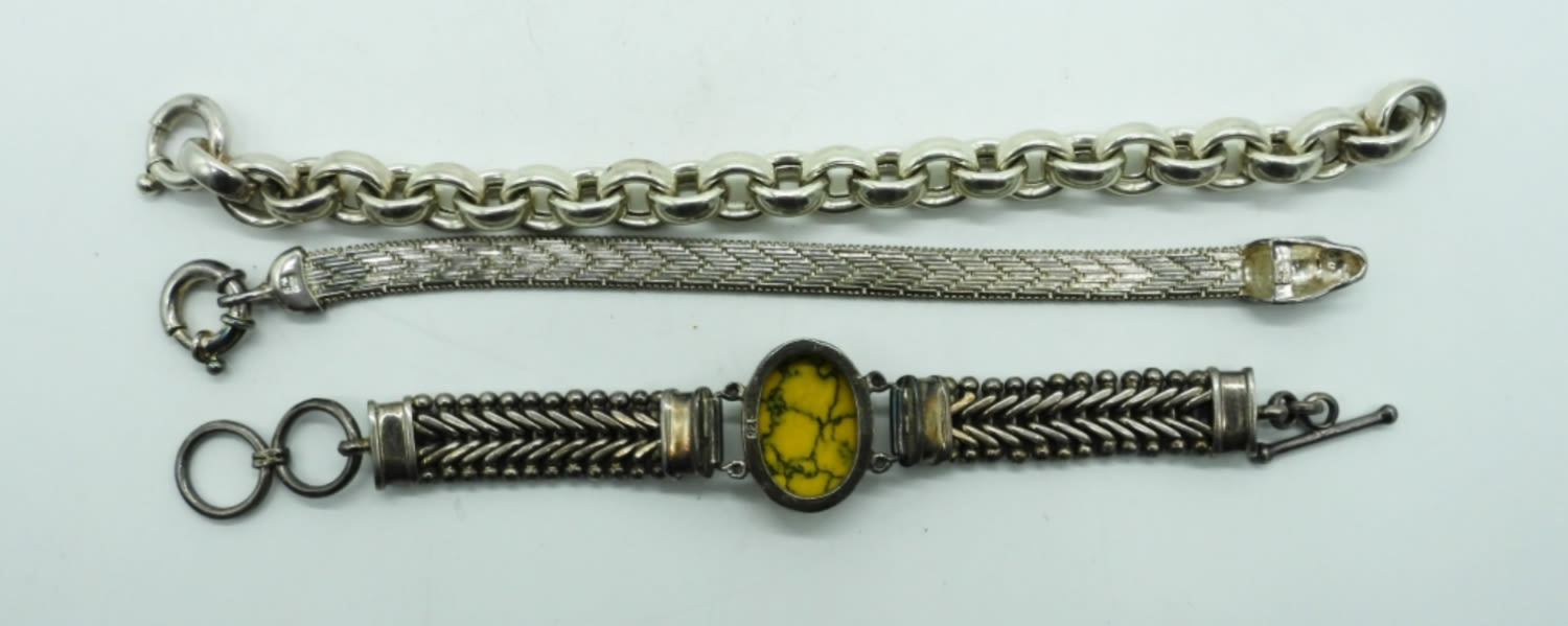 82DWT, 2- 71/2″ LONG AND 1- 8″ LONG, ALL DIFFERENT STYLES ALL STAMPED ON BRACELET 925