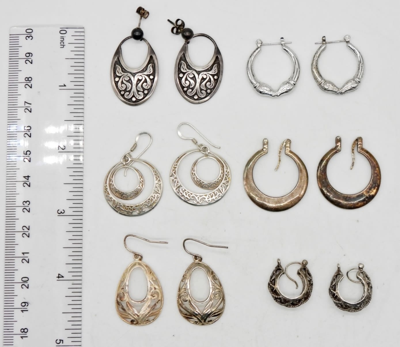 HOOP SHAPED/ROUND STERLING SILVER EARRINGS; STAMPED 925; 18 DWT