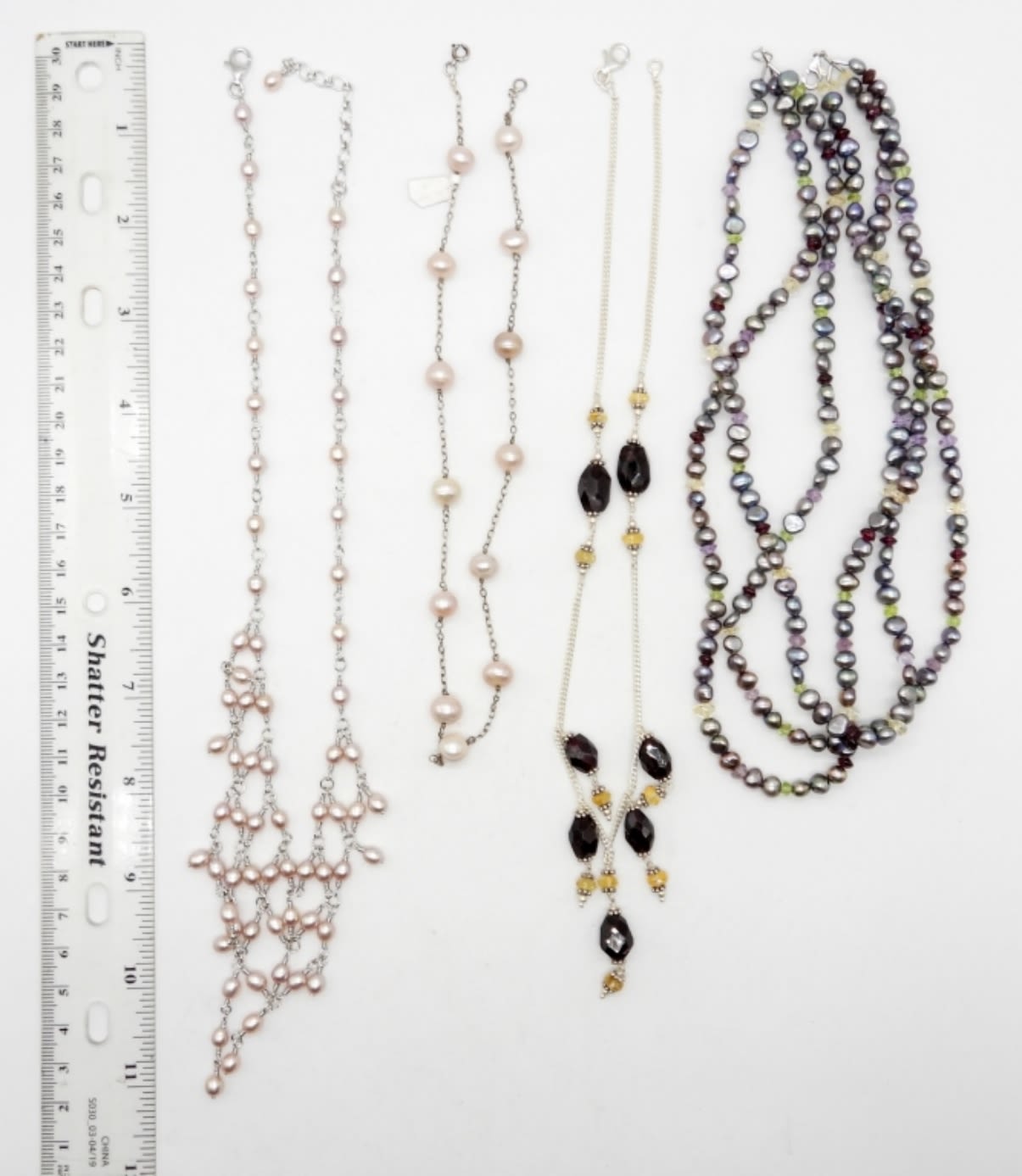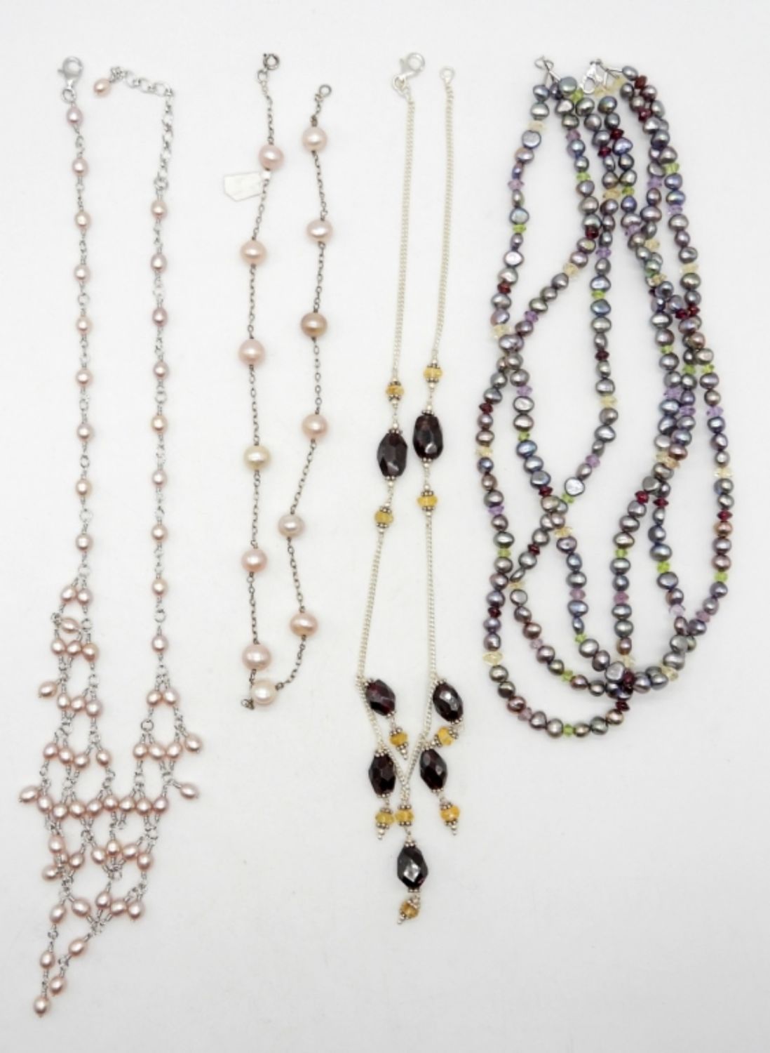 16″-18″ STERLING SILVER NECKLACES WITH MOTHER OF PEARL, SMOKY QUARTZ, & NATURAL STONES – MARKED 925