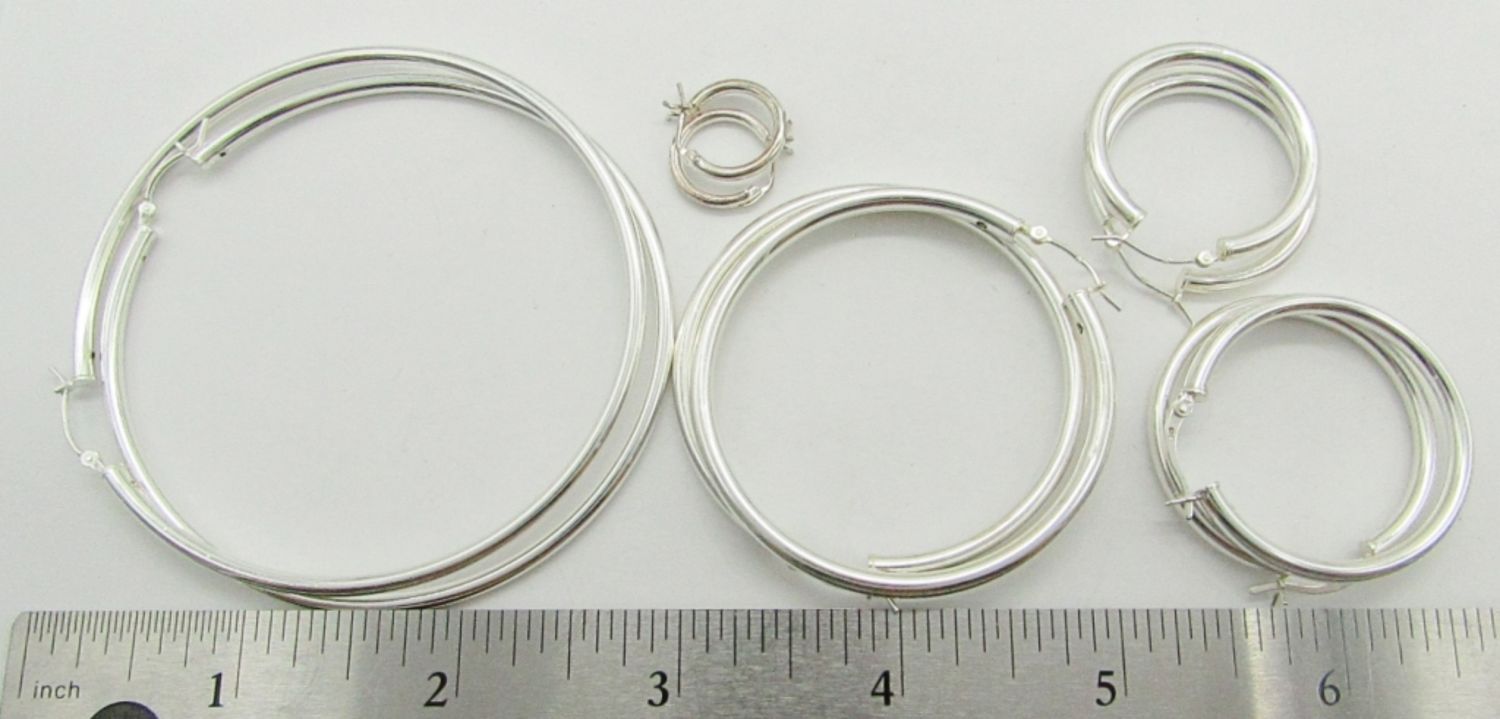 2.75″, 2″, 1 3/8″, 1 1/8″, 1/2″; Marked 925; 18 dwt.