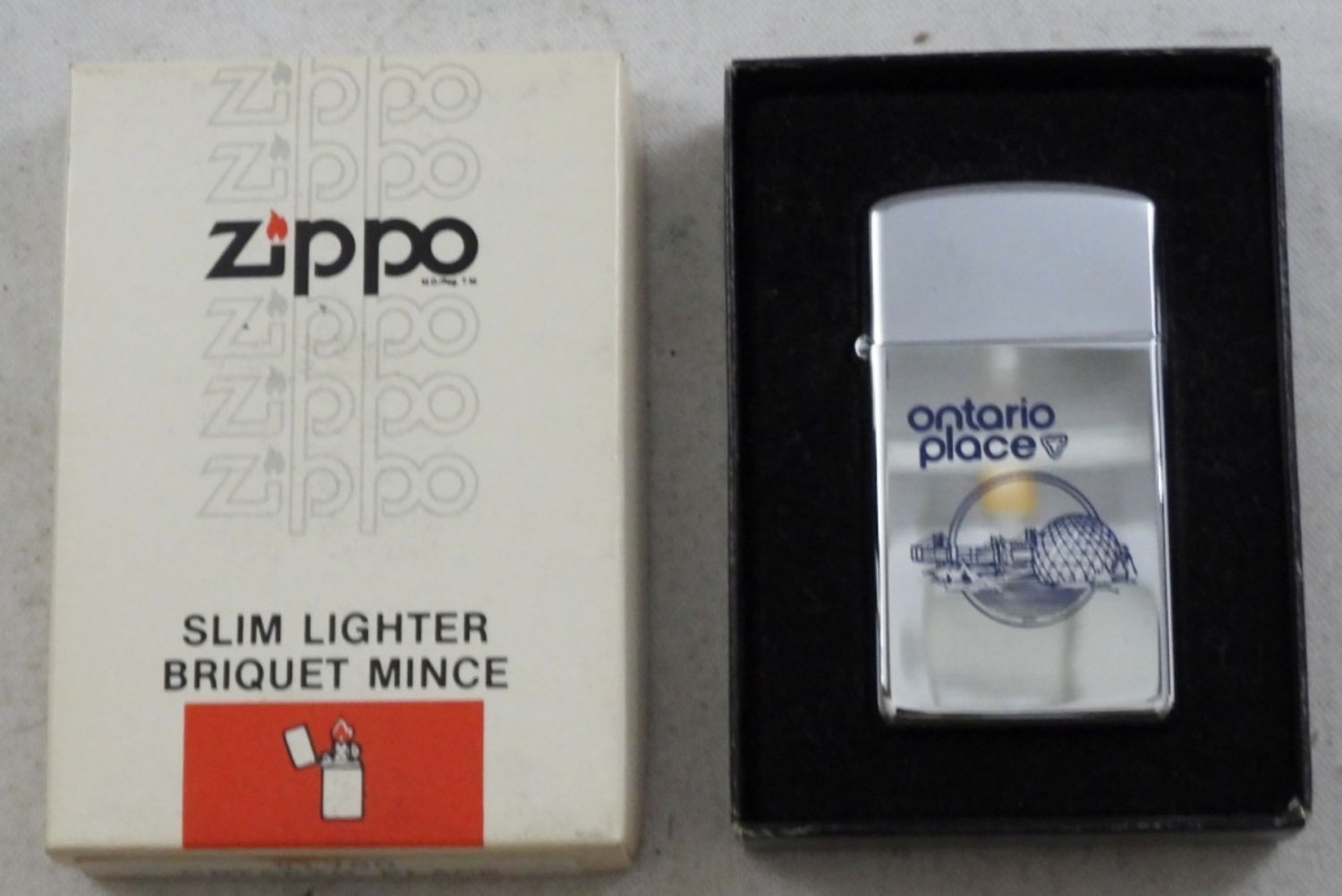 IN THE BOX, ONTARIO PLACE SENCE ON THE FRONT, SLIM LIGHTER BRIQUET MINCE