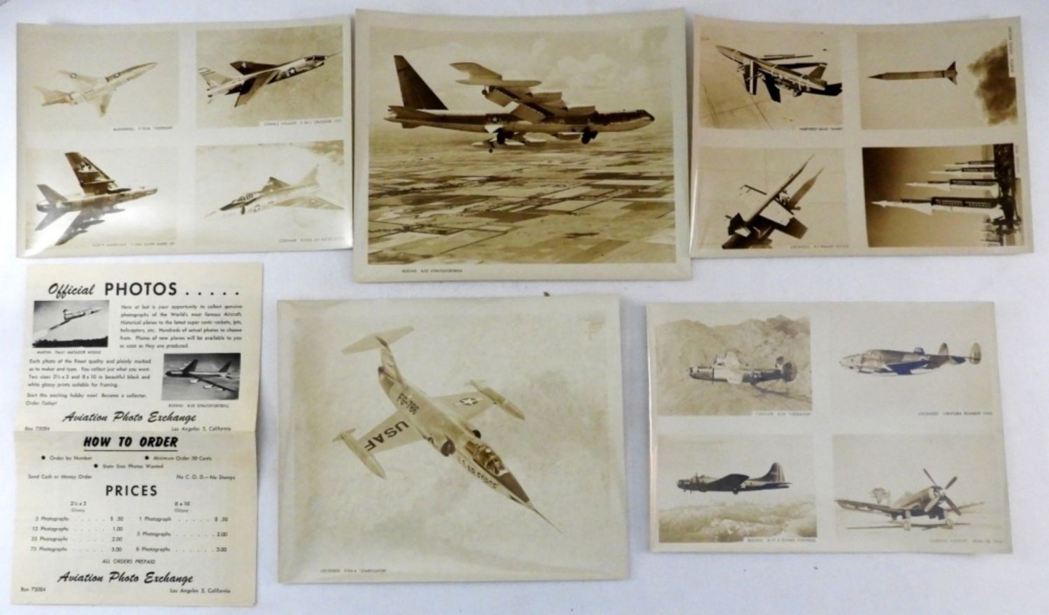 with ORDERING INFO & (5) VTG PHOTOS of PLANES in ORIGINAL ENVELOPE