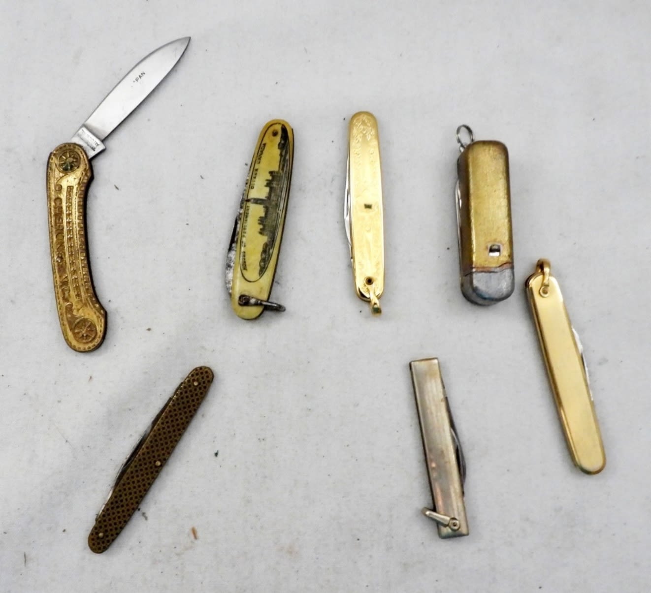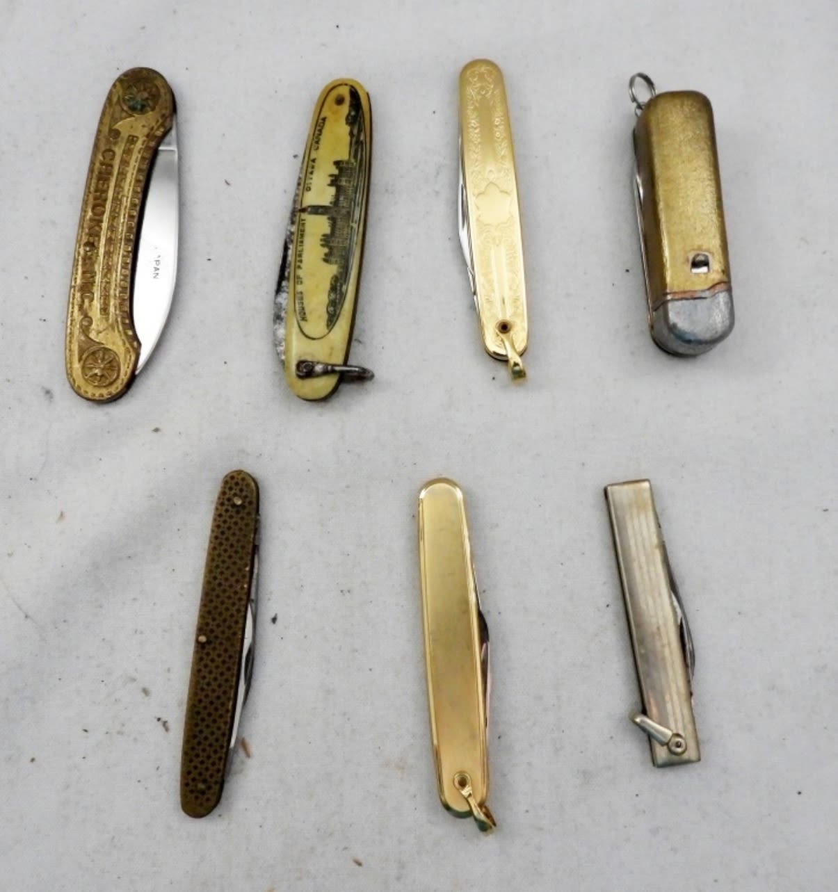 Multi-Blade/Tool/Lighter Japan, Single Blade Elosi Germany Single Blade Cherokee N.C. Taylor Cutlery Kingsport Tenn., 2-Blade Kiat, 2-Blade Anvil USA, 2-Blade Stainless Steel, 2-Blade GLF; Like New/Used Conditions.