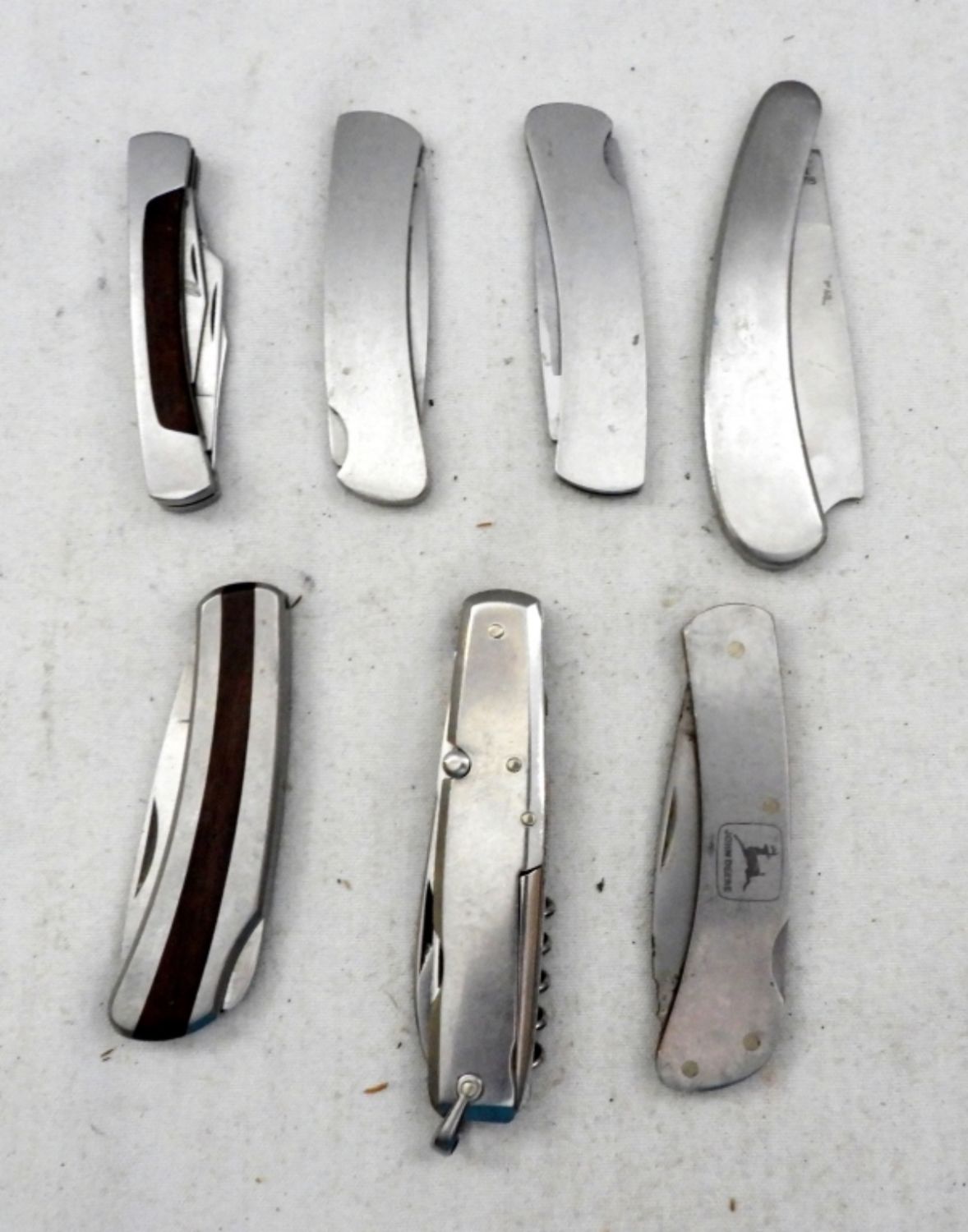 Single Blade Klein Tools Inc Japan, Single Blade Frost Cutlery, Single Blade Buck 525, Single Blade Buck 525, Single Blade Camillus NY USA 864 John Deere, 3-Blade Silver Sword Camillus 832 USA, 2-BladeRoger Albert Foribe France; Used Conditions.