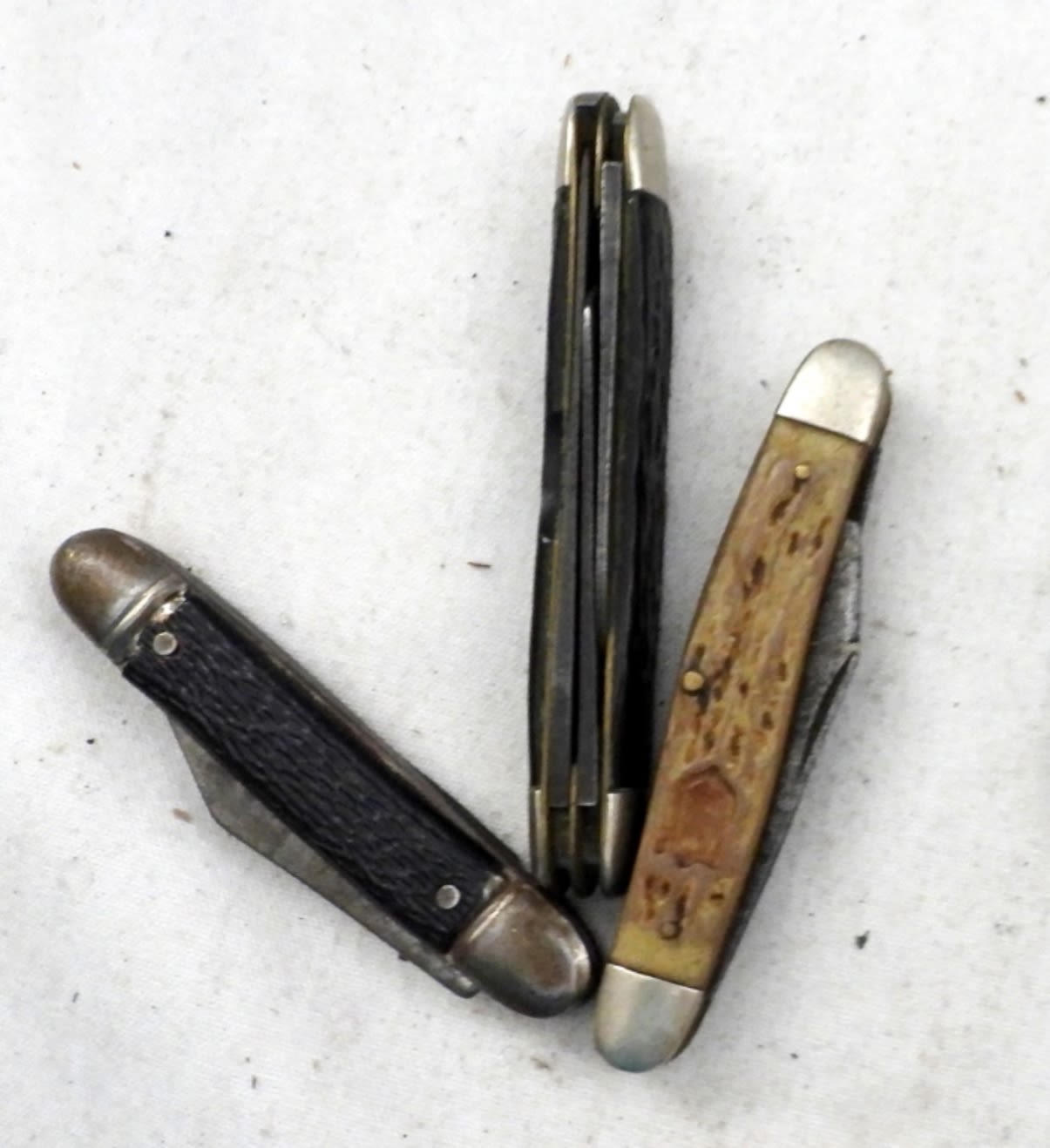 3-Blade Schrade Walden, 2-Blade The Ideal, 3-Blade Robeson Shuredge 623884, 2-Blade Camillus New York USA 14, 3-Blade Camillus New York USA 64 (1 Blade Broken); Used Conditions.