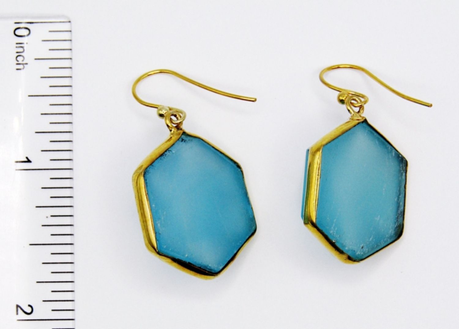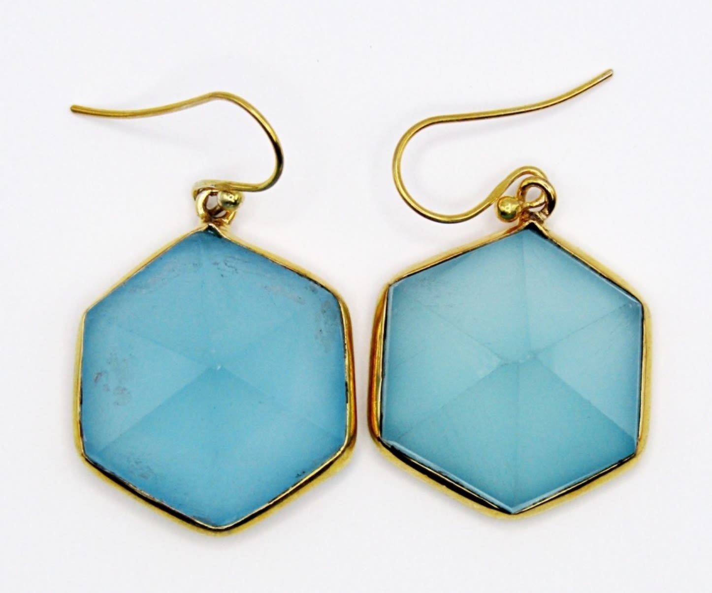 EARRINGS WITH 3-D GEOMETRIC TEAL CENTER