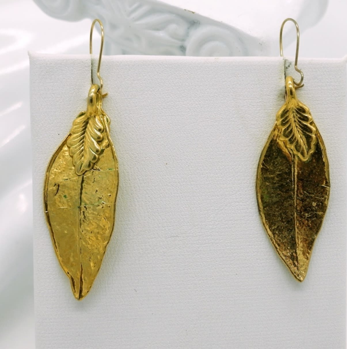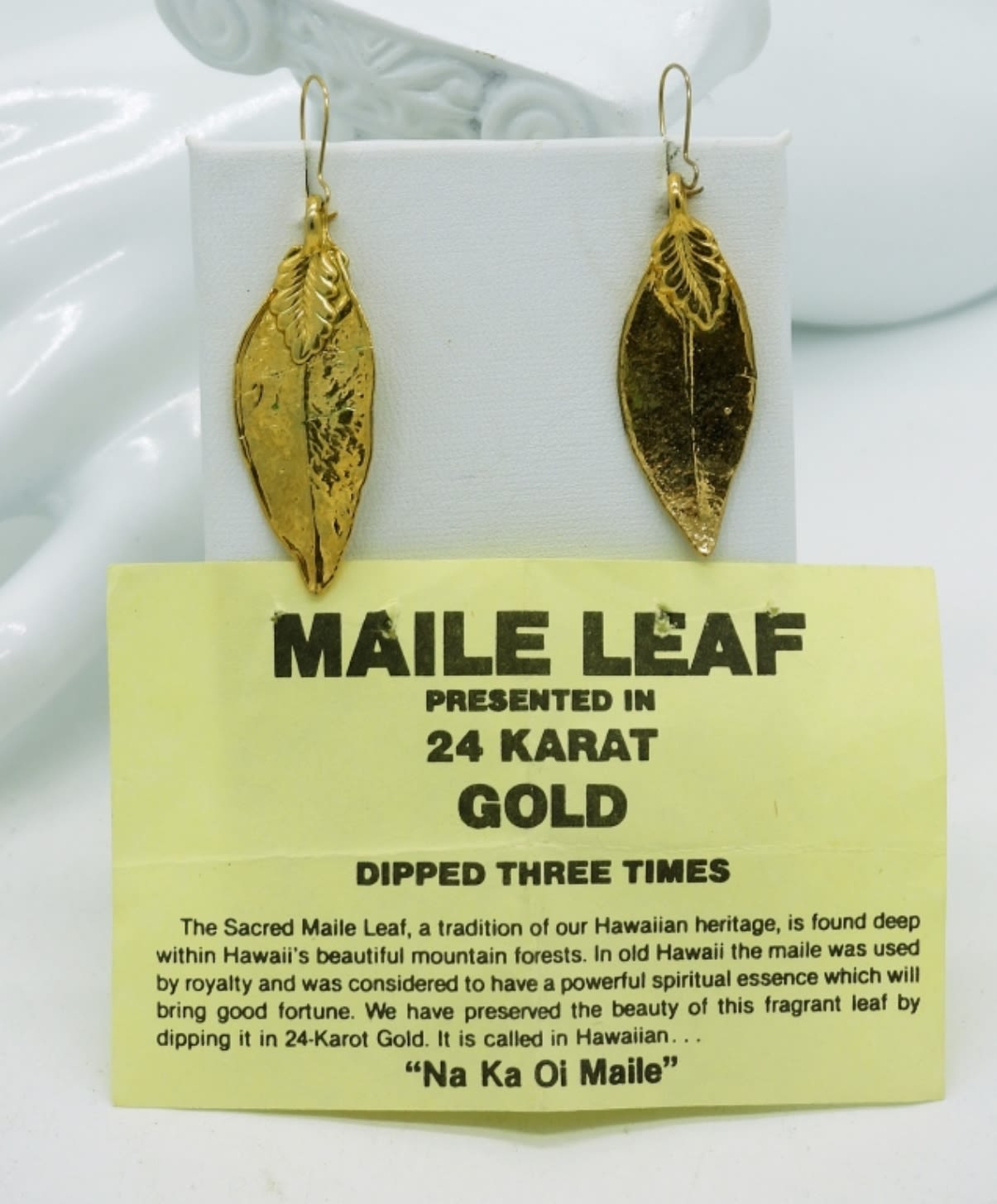Vintage, Maile Leaf Earrings from Hawaii that have been dipped in 24K Gold three times.