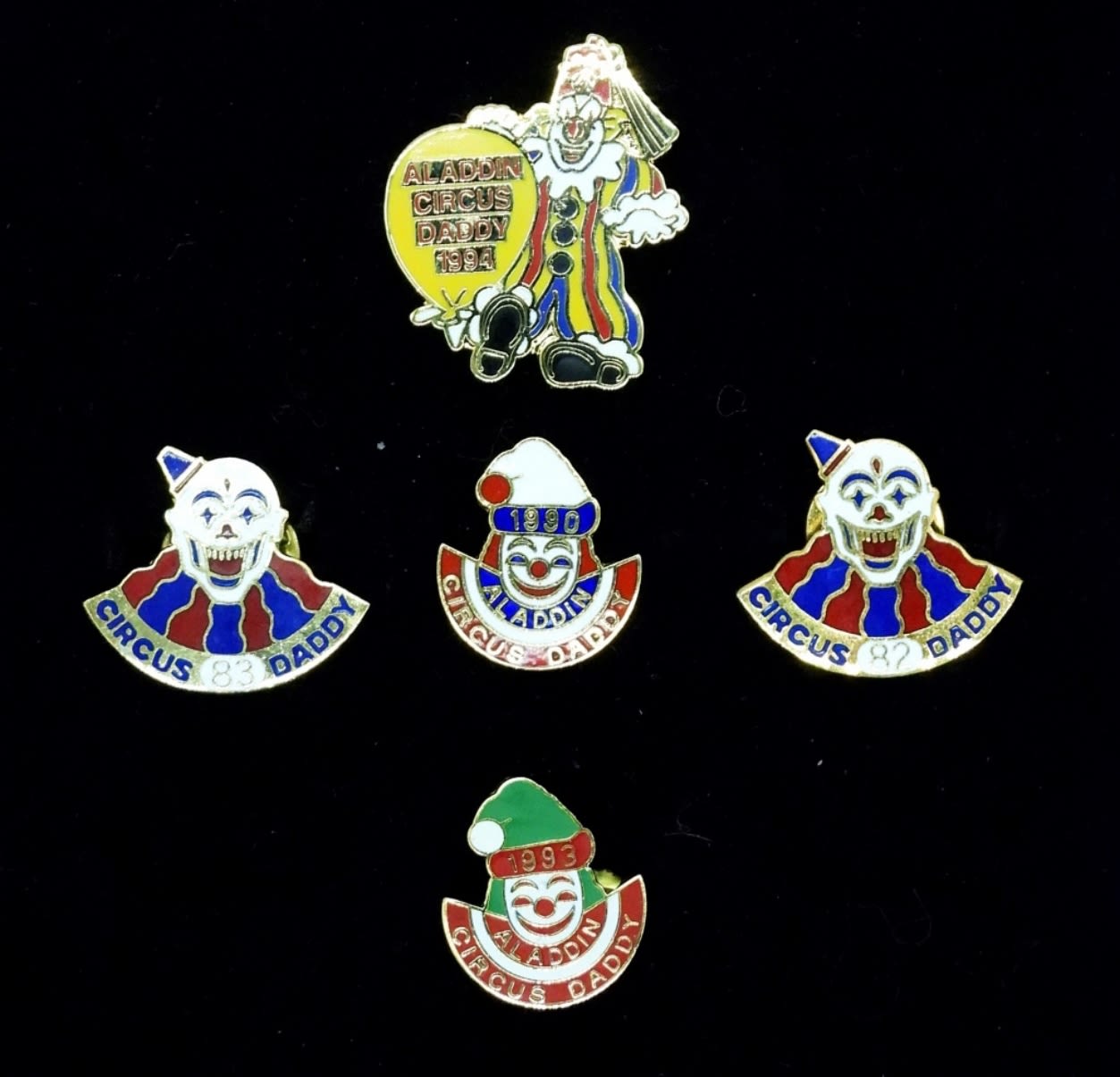 Aladdin Shriner “Circus Daddy” Pins.Years 1982, 83, 90, 93, 94.