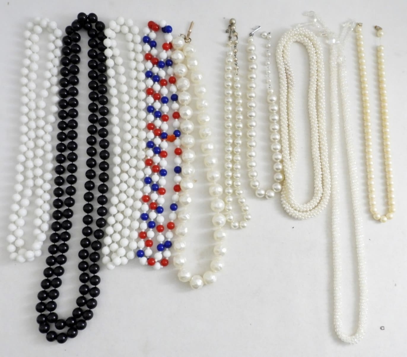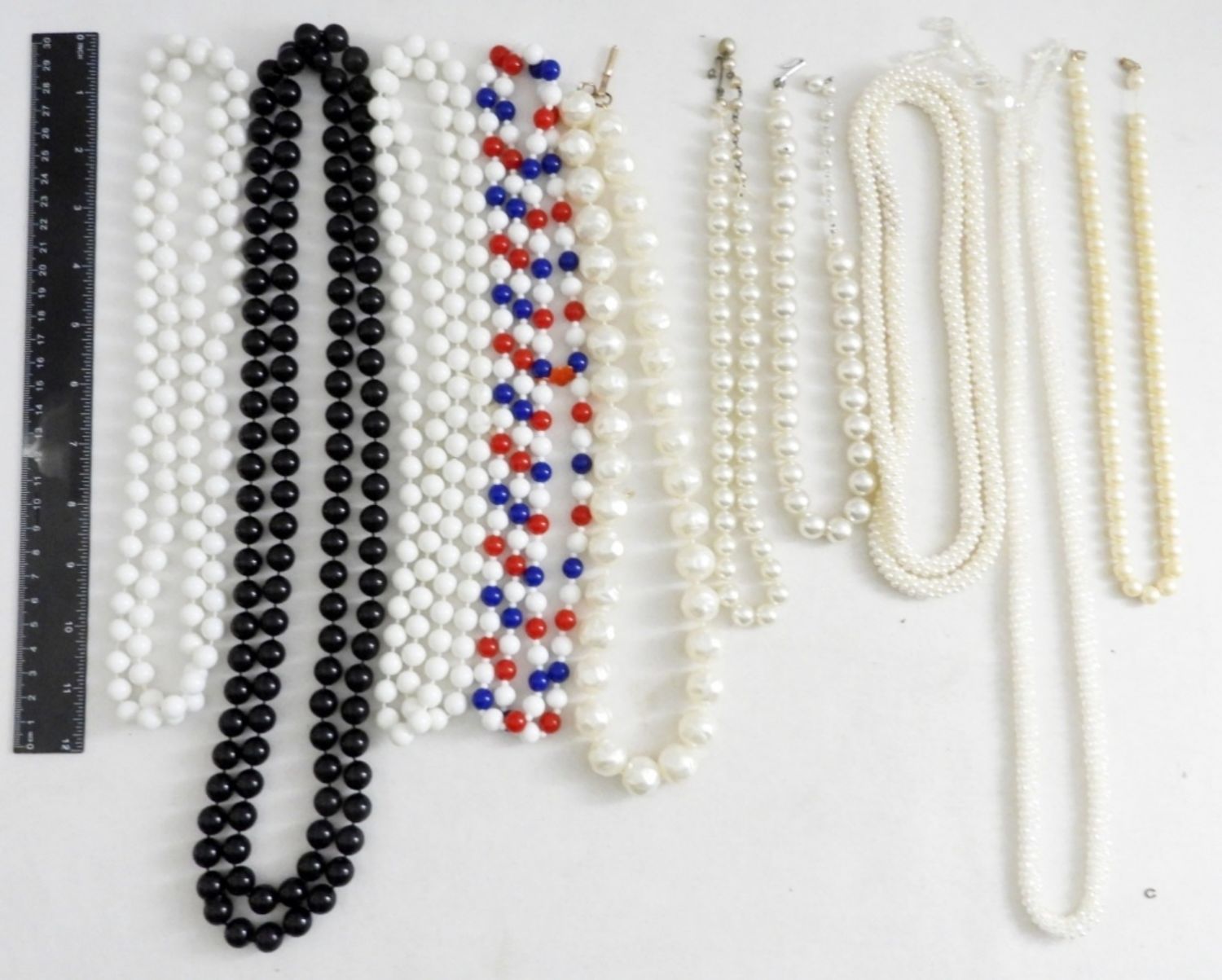 FAUX PEARLS, RHINESTONES & MULTI COLORED BEADS – LENGTHS VARY 16″-60″