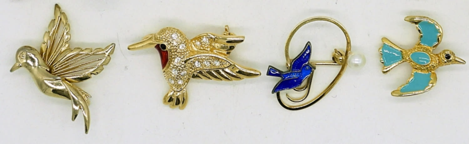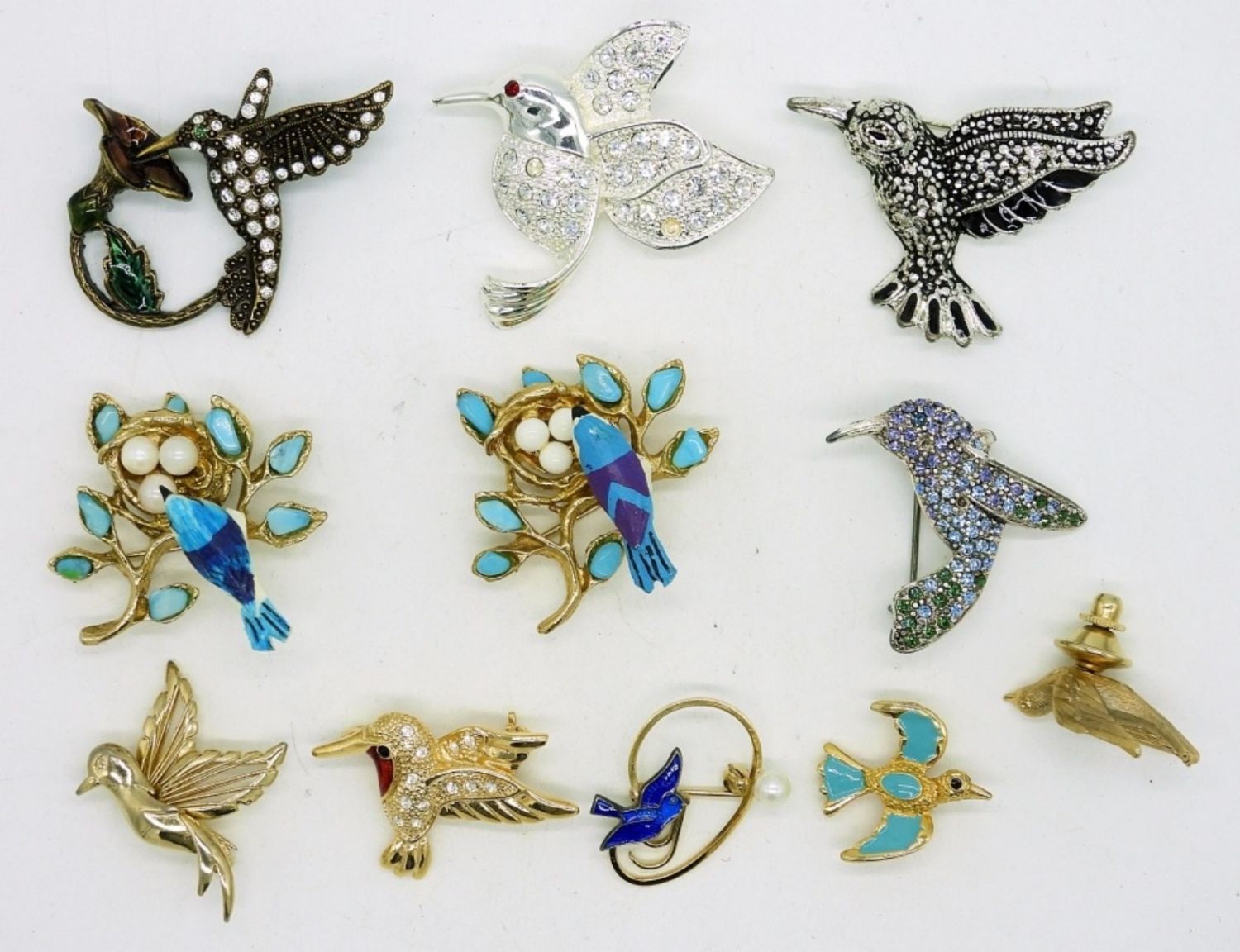 Eleven Brooches, all Bird Themed! Gold and Silver Tone, Rhinestones & Gemstones.