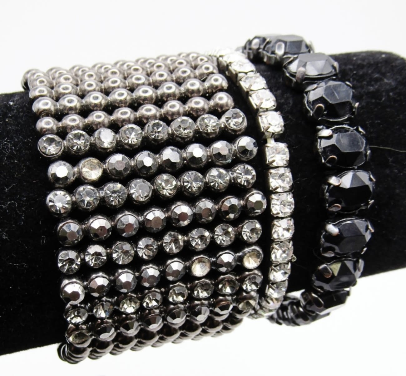 (1) BLACK, (1) CLEAR, (1) THICH BEADS & STONES. 2-2.5″ IN DIAMETER