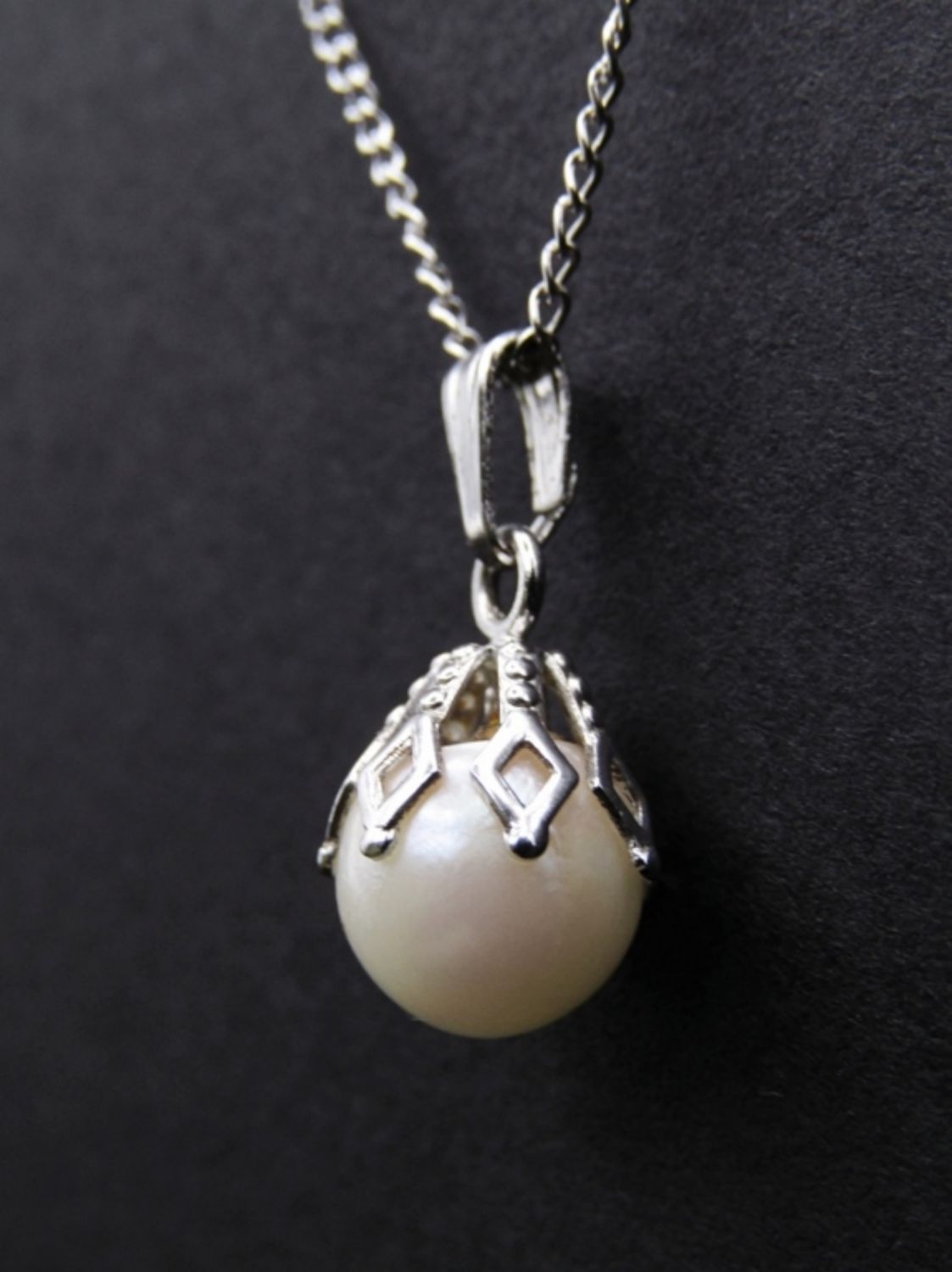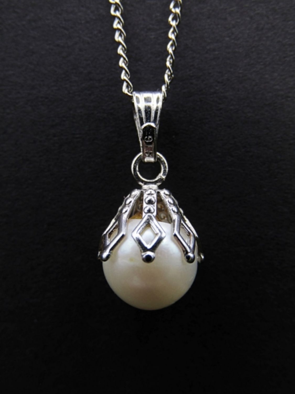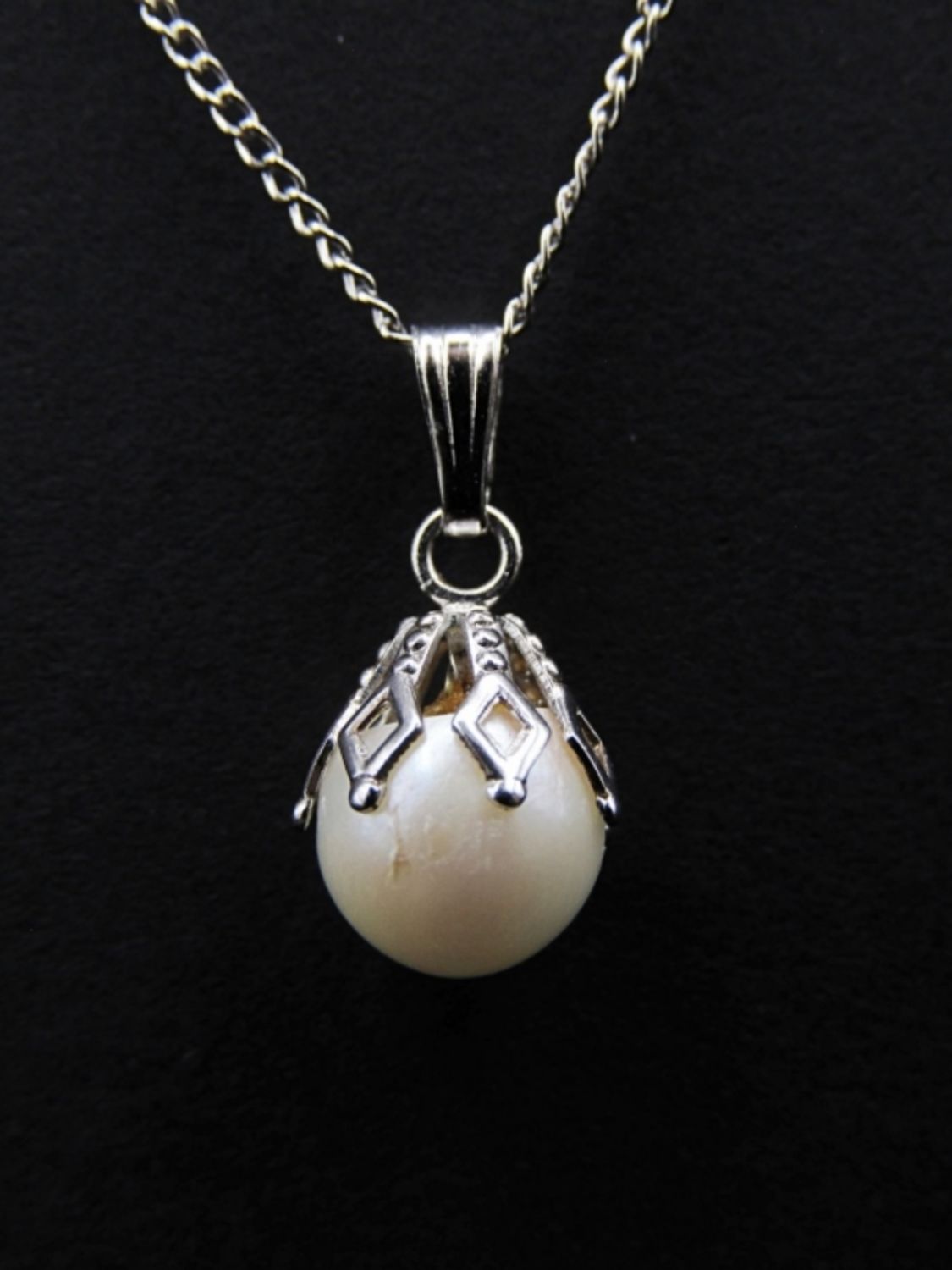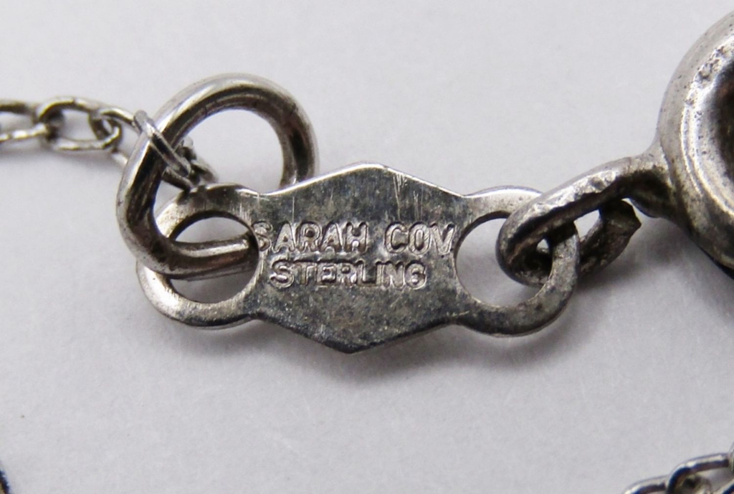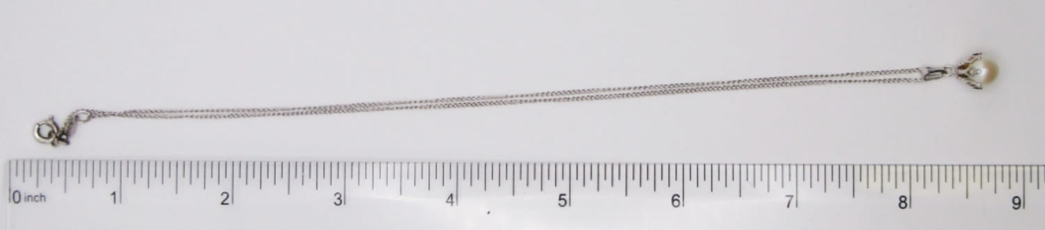16″ WITH FILIGREE SETTING. TAG BY CLASP MARKED “STERLING”