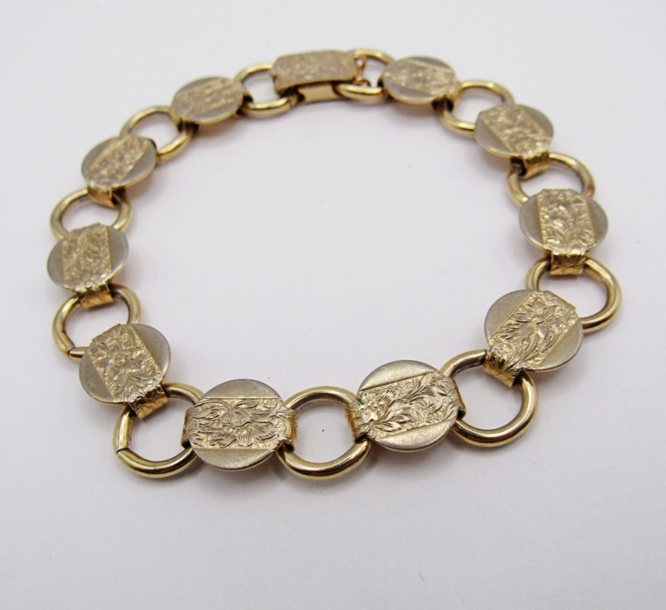 6.5″ BRACELET FEATURING TEXTURED FLORAL LINKS.