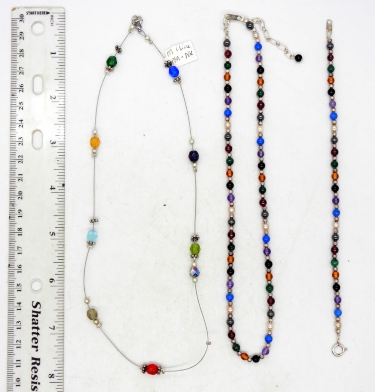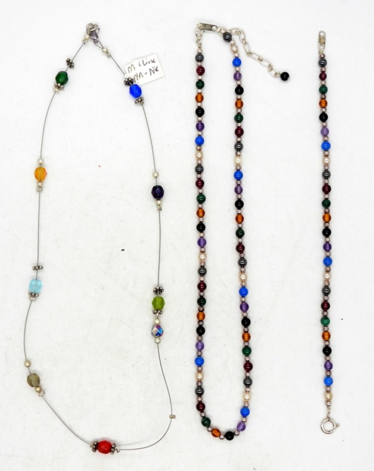 16″ WIRE BEADED NECKLACE, & BEADED SET 15″ NECKLACE & 7″ BRACELET /W CLASPS MARKED “STERLING 925”