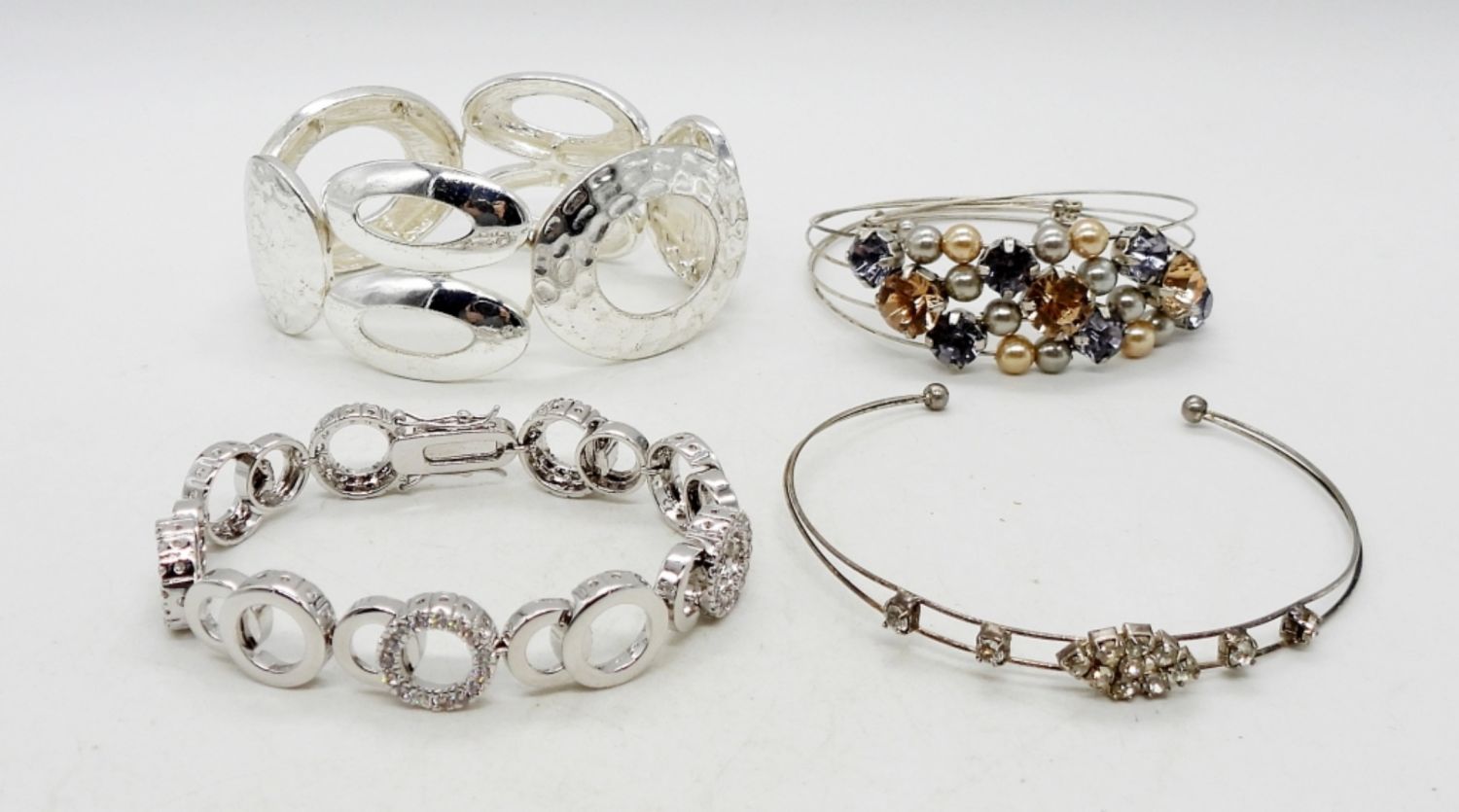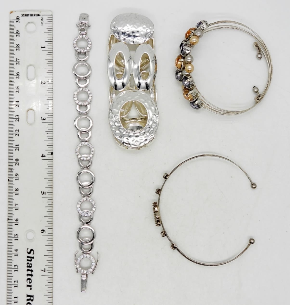 2.5″ STRETCH, (2) 2.5 WIRE CUFFS W/ RHINESTONES, & 7″ W/ RHINESTONES