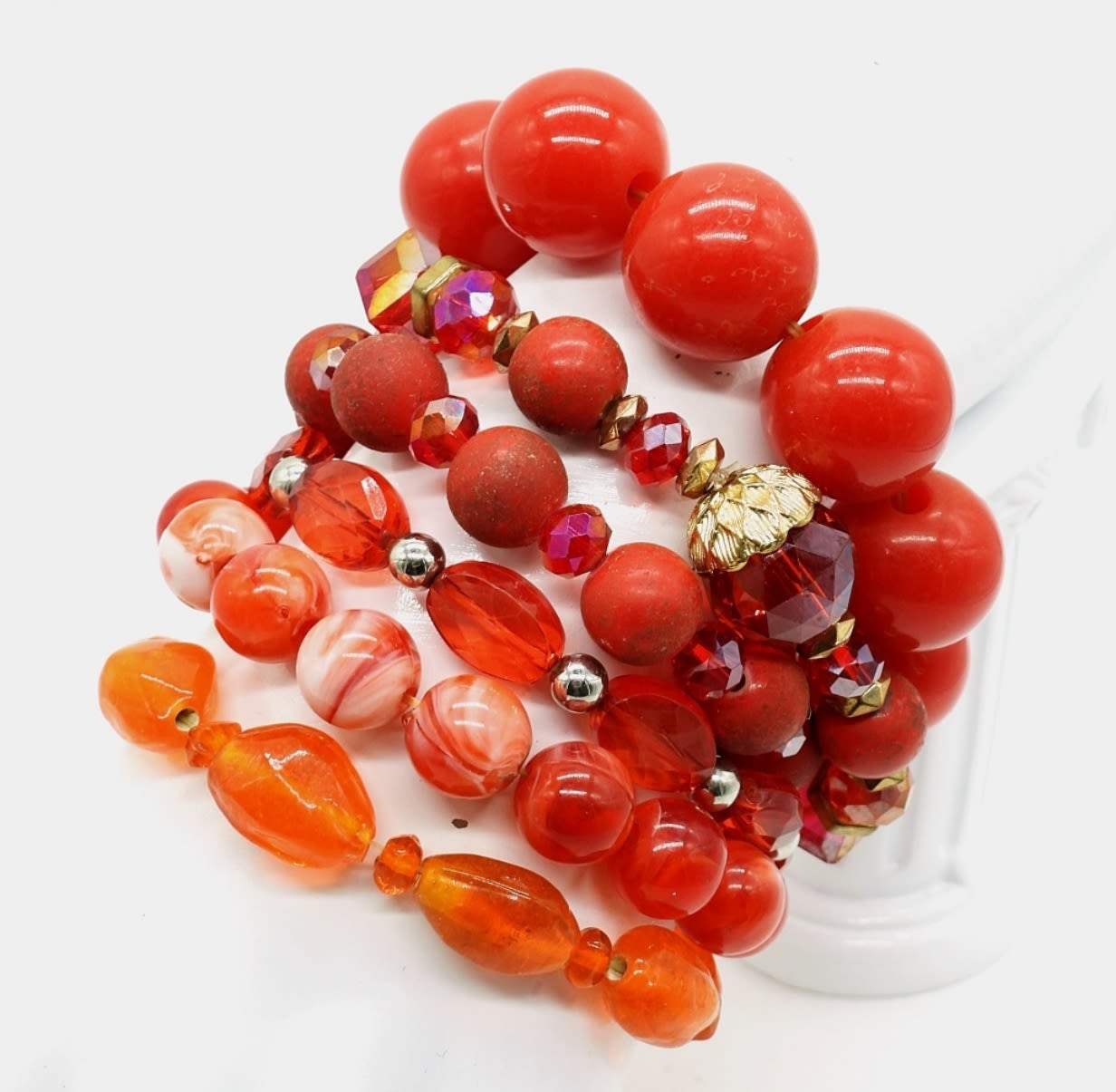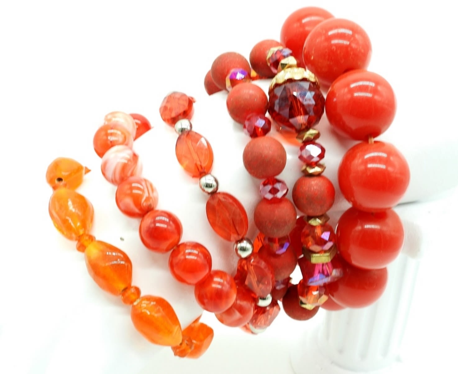 Six Really Cool, Red and Orange Stretchy Plastic Bead Bracelets.