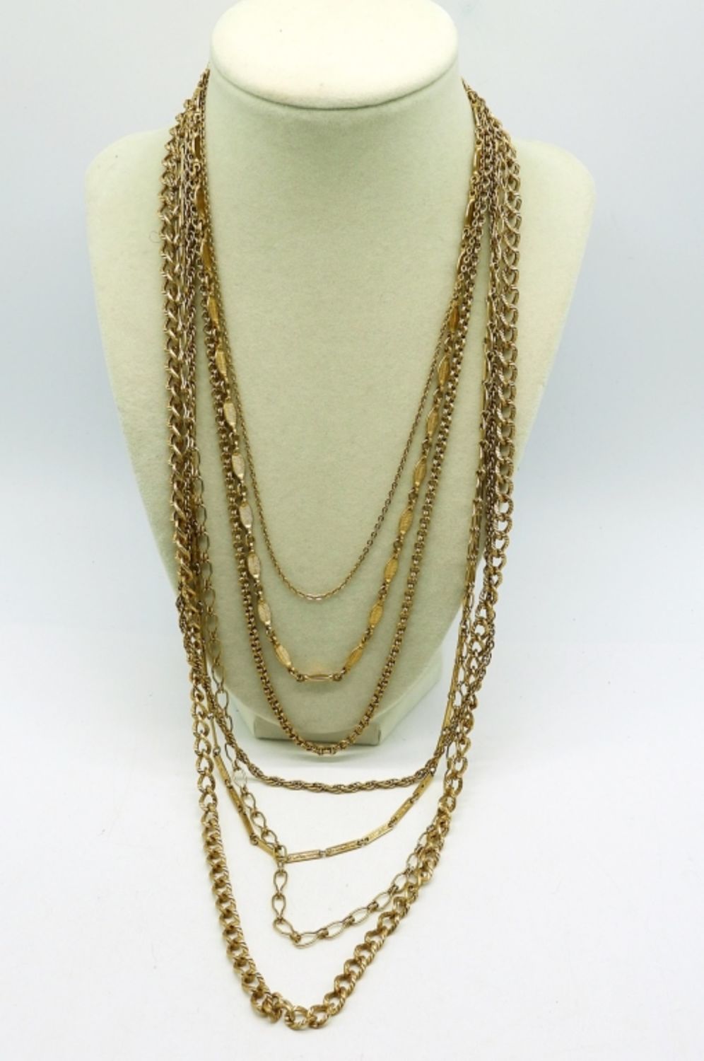 Napier Brand, 7 Strand Gold Tone Necklace. 19″.
