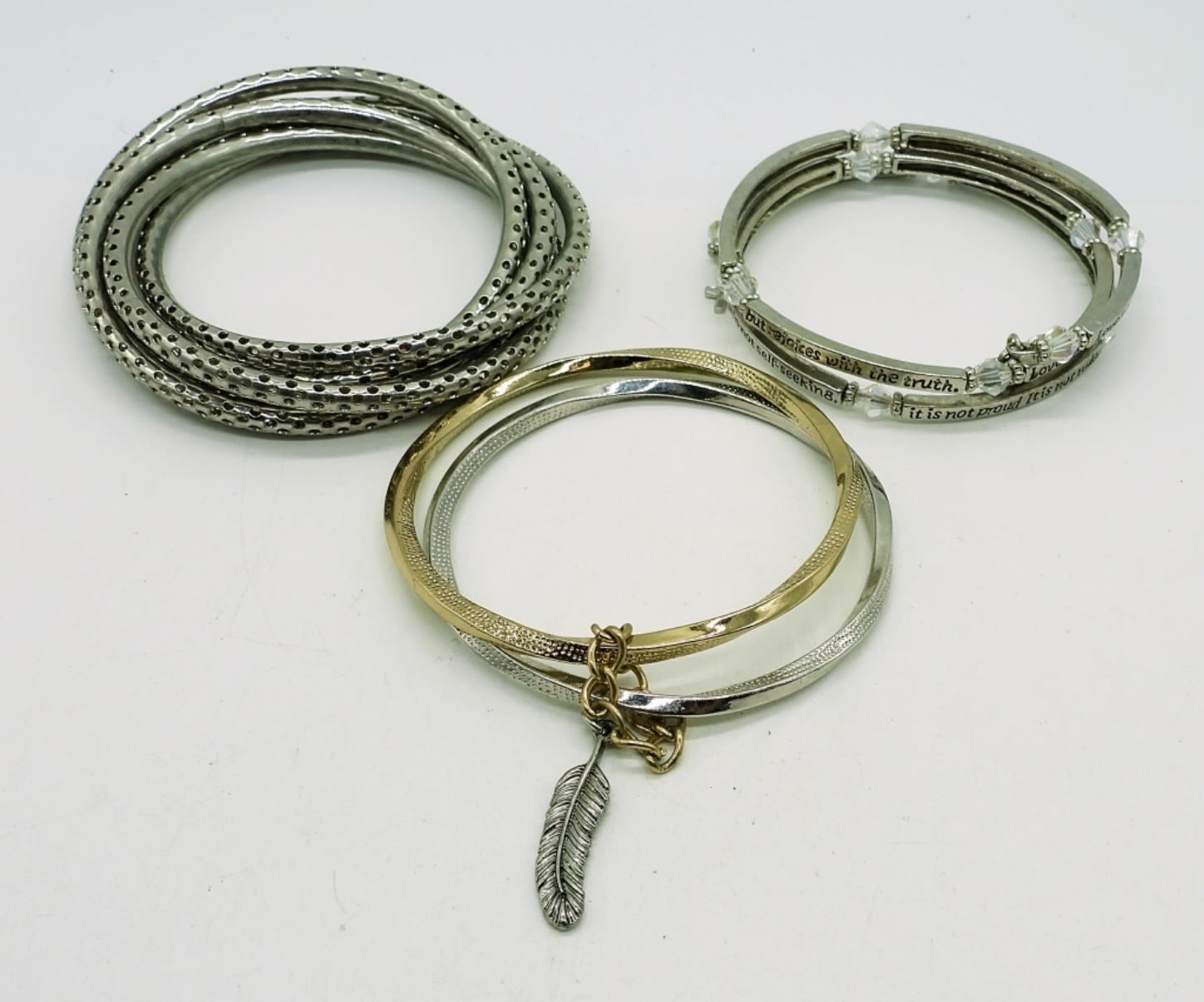 Three Silver and Gold Tone Bracelets, Very Unique. Bangle Style.