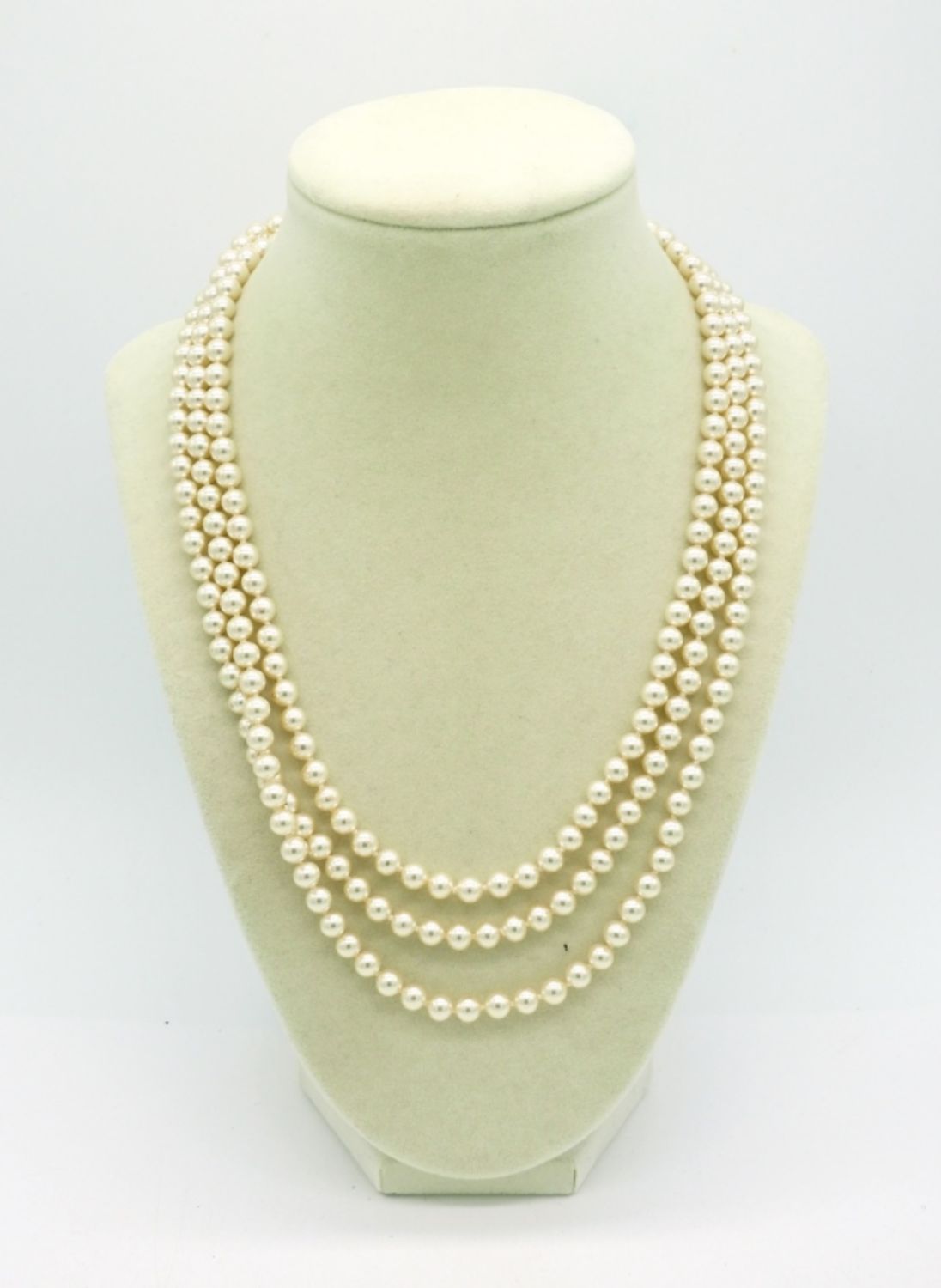 Vintage “Jostens” Three Strand Pearl Necklace. These pearls are Gorgeous, Look Brand New and come in a Satin Lined Case to keep them safe!