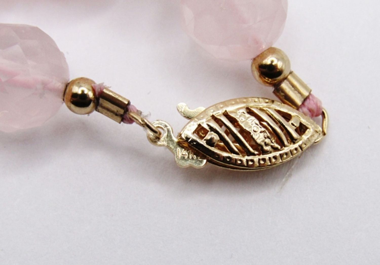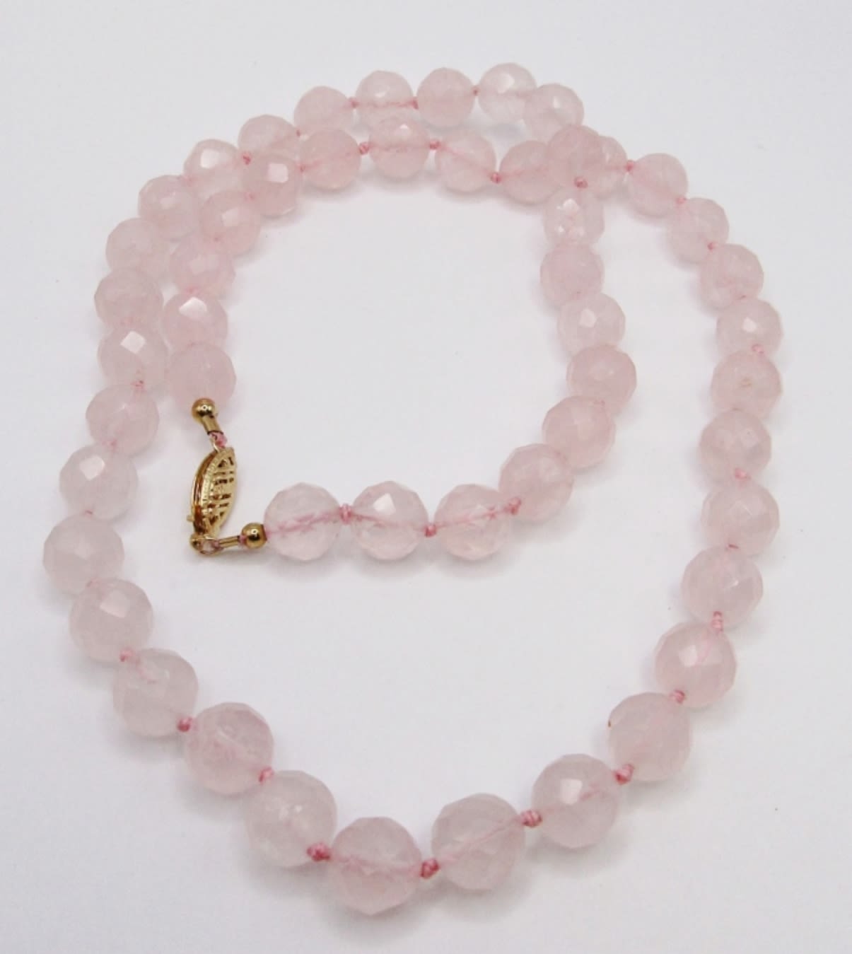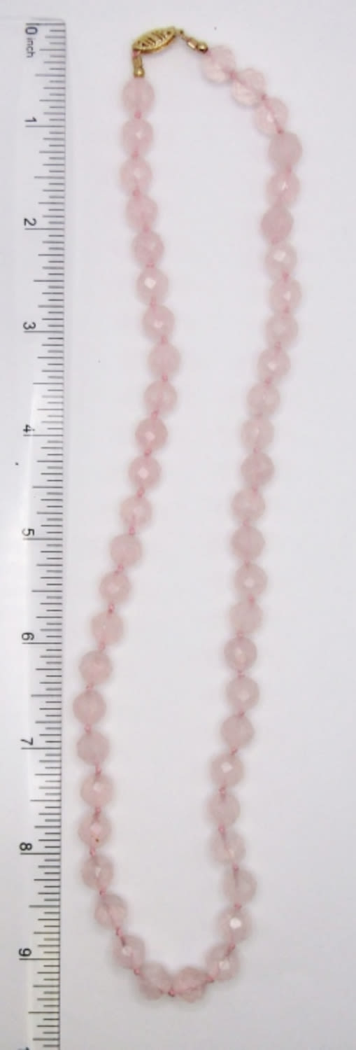 Vintage Rose Quartz Faceted Bead Necklace with 14KG Clasp, Pink String. 18″.