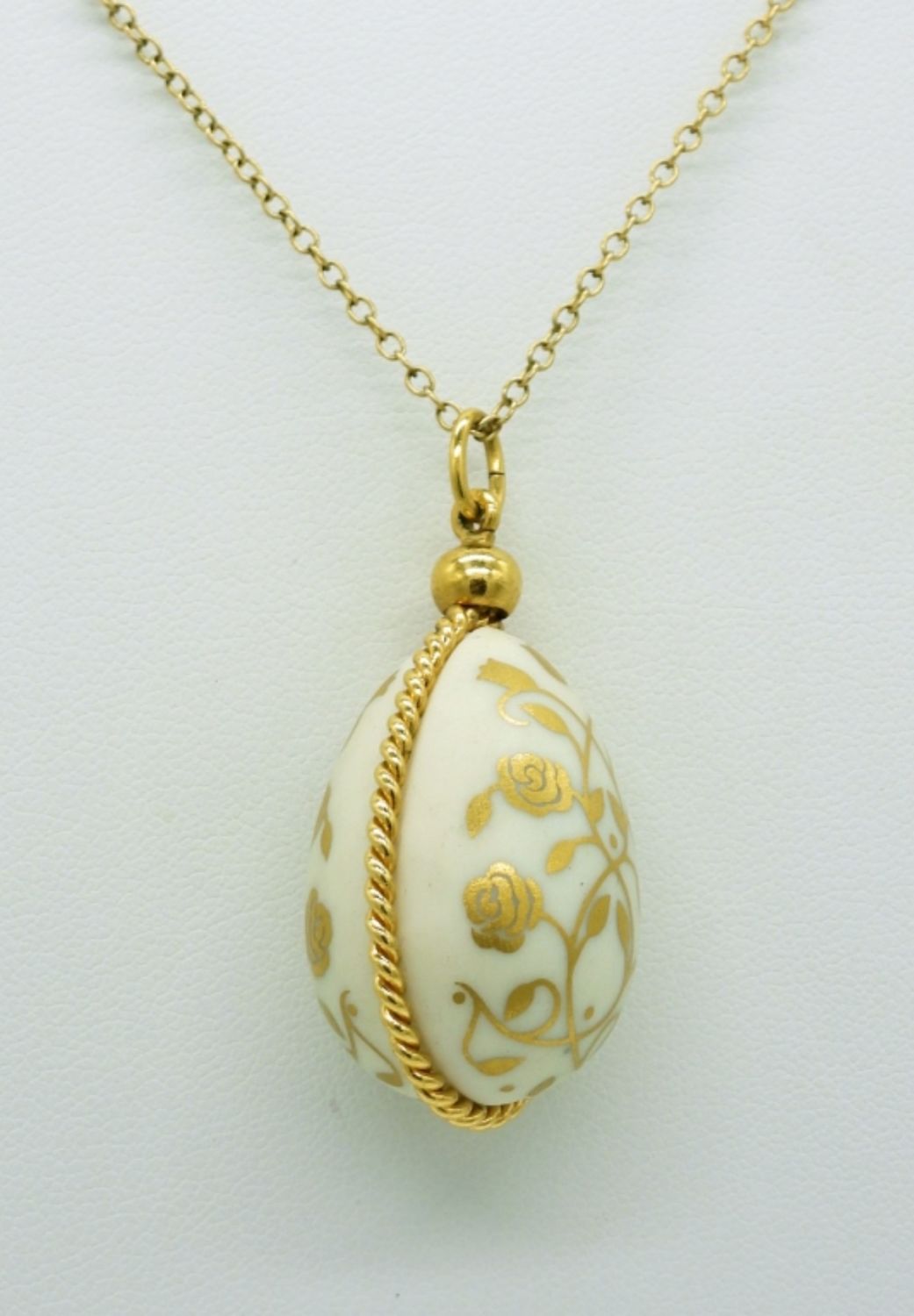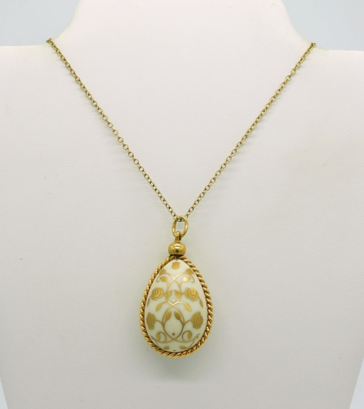 Circa 1978, Franklin Mint Golden Easter Egg Necklace on a gold tone chain, 24″