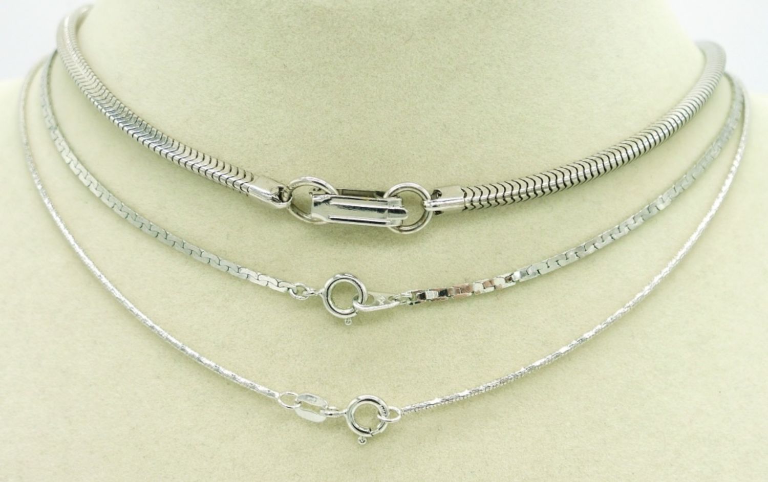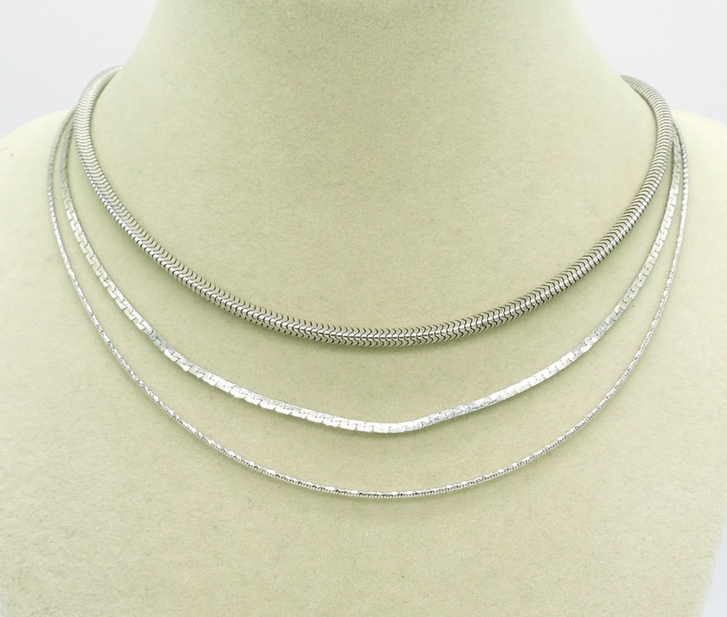 Four Silver Tone Chains in Great Shape. Lengths are 15″, 16″, 15.5″.