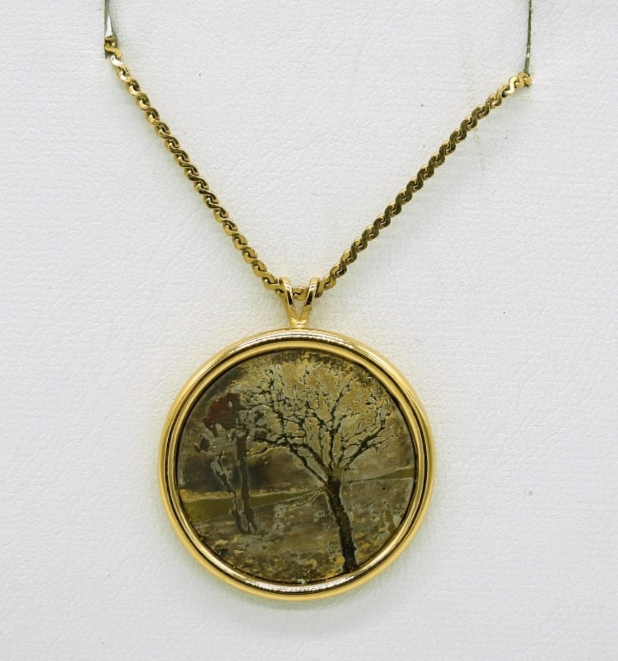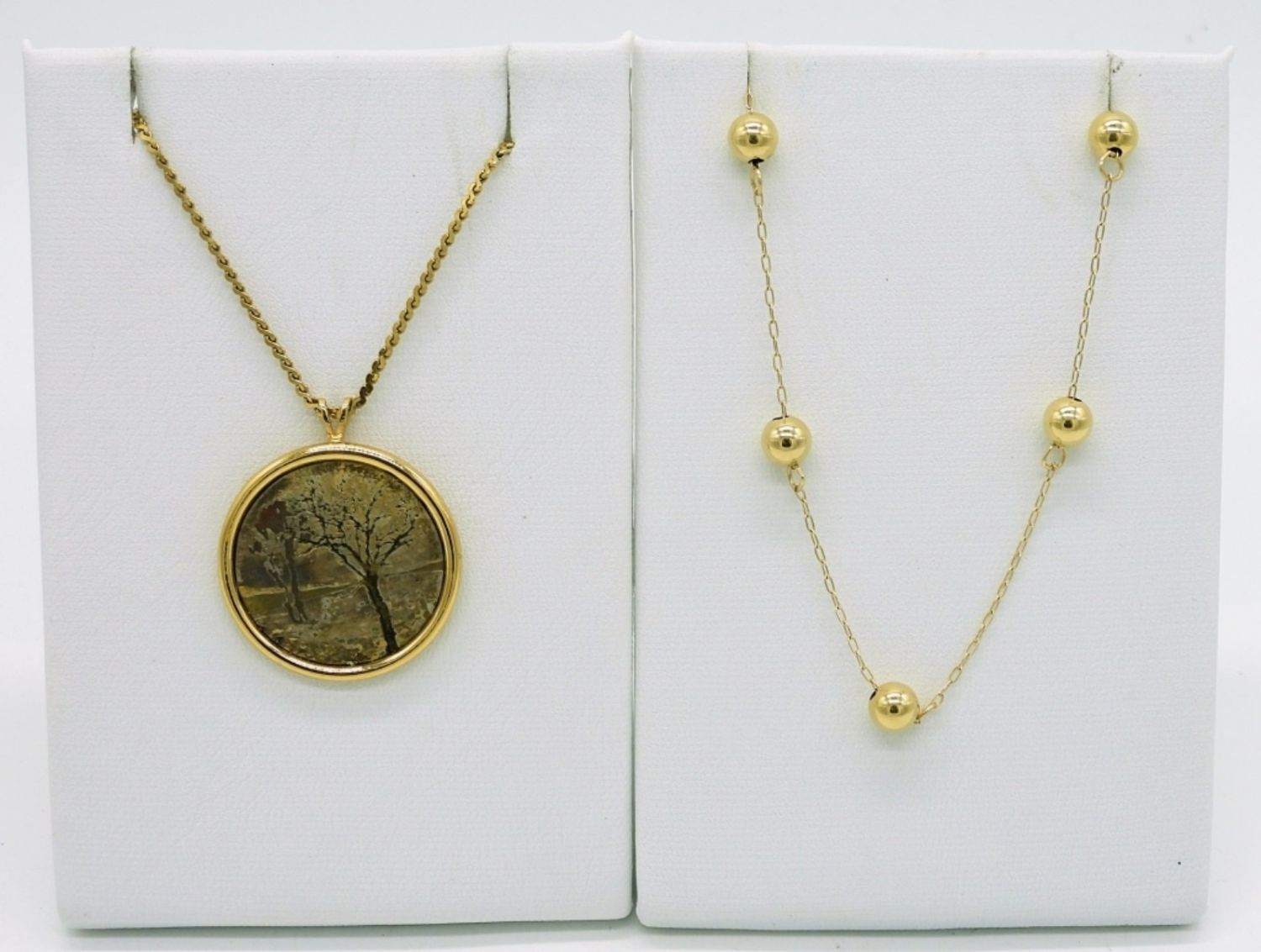 Gold Told, Reed & Barton Nature Scene Necklace, 18.5″. Petite Gold Tone Necklace with gold tone beads, 17″.