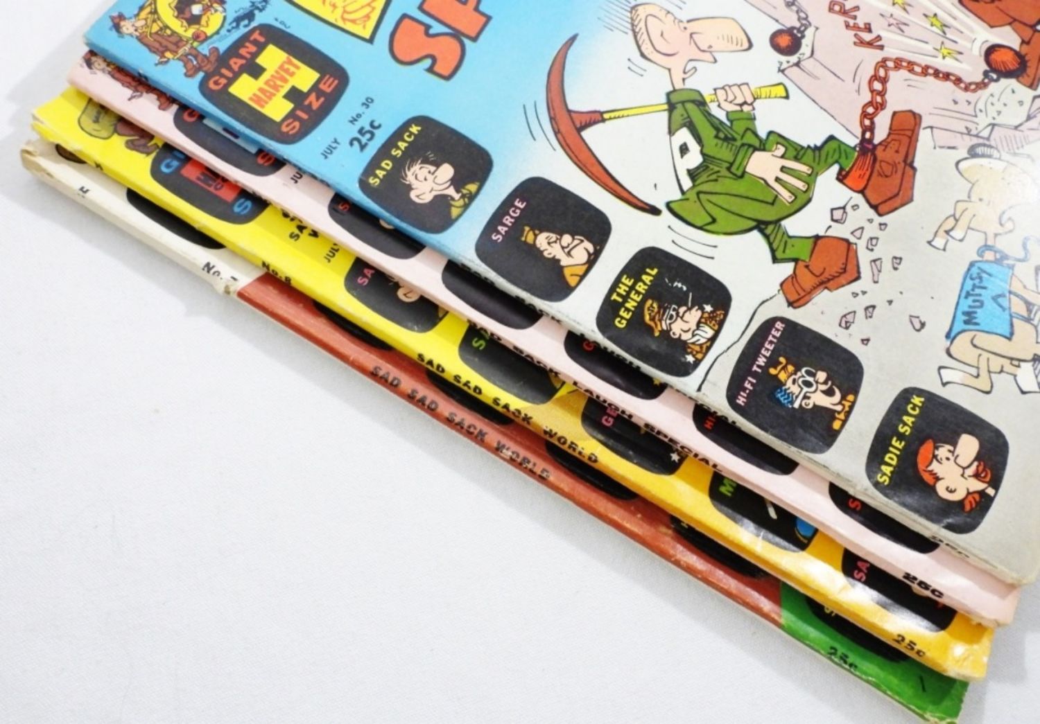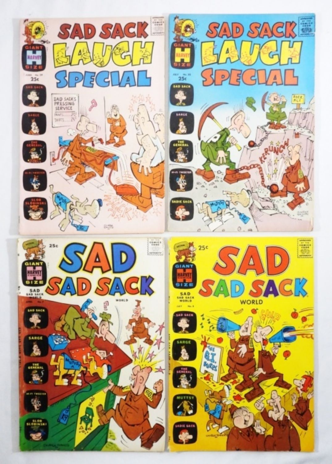25 CENT ISSUES, GIANT-SIZE ISSUES, 2-SAD SACK LAUGH SPECIAL ISSUE # 29,30, 2- SAD SACK WORLD ISSUE #7,8, MOSTLY GOOD TO VG CONDITION