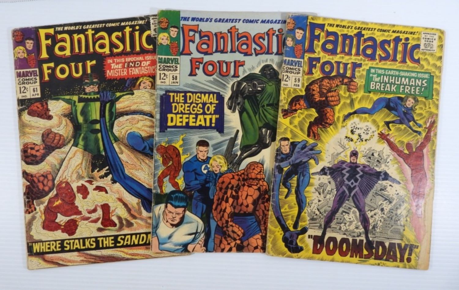 #61 GOOD cover torn, #58 VG #59 GOOD cover torn bottom right, SILVER AGE 12c ISSUES