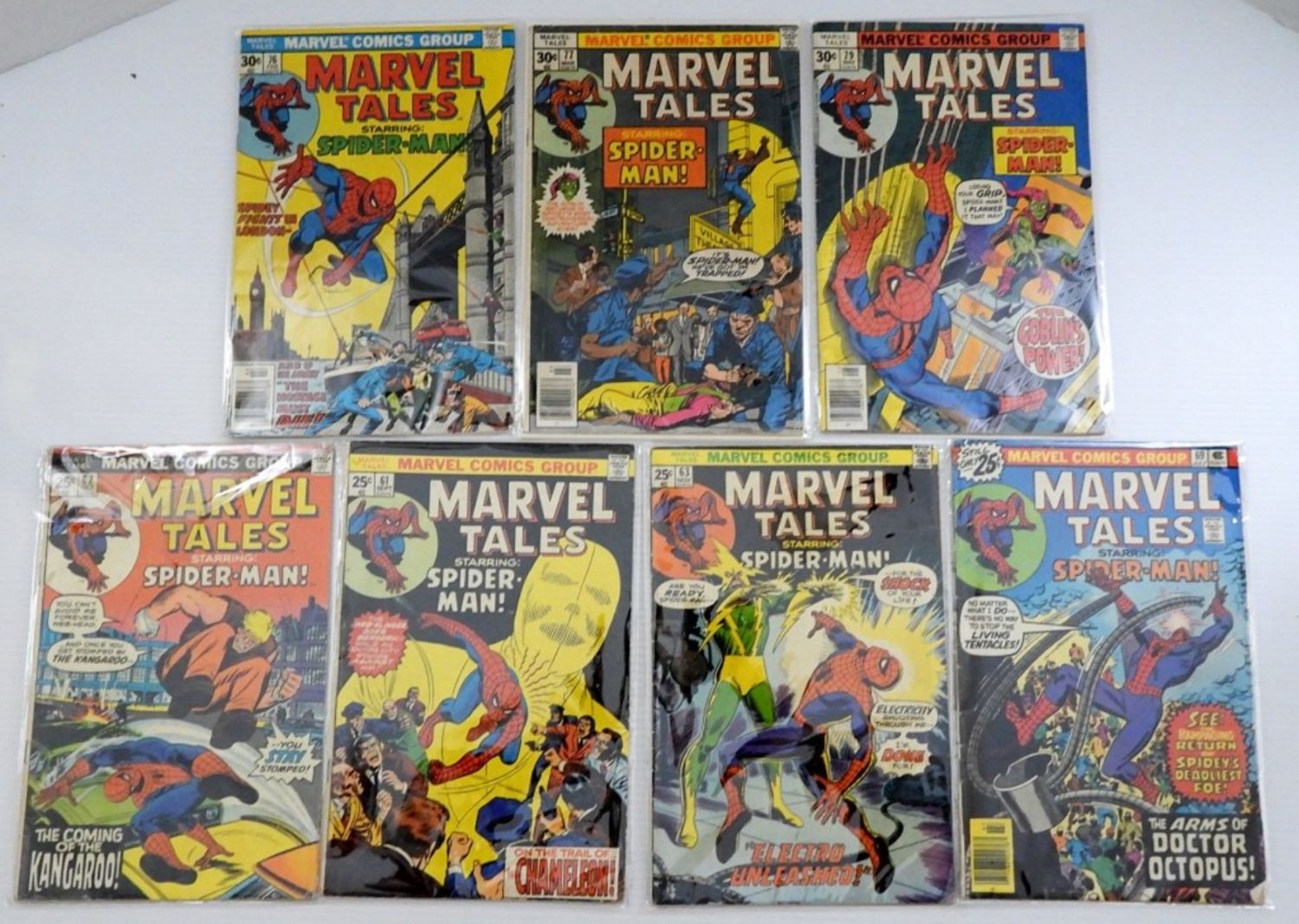 MARVEL TALES STARRING: SPIDER-MAN ISSUES #61, 62, 63, 69, 76, 77, & 79 – VERY NICE CONDITION & SLEEVED