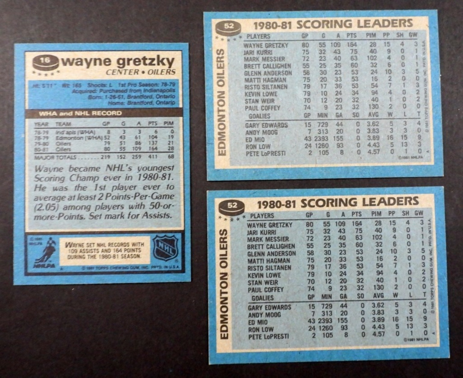 (2) #52 OILERS w/GRETZKY – NICE NM/EM