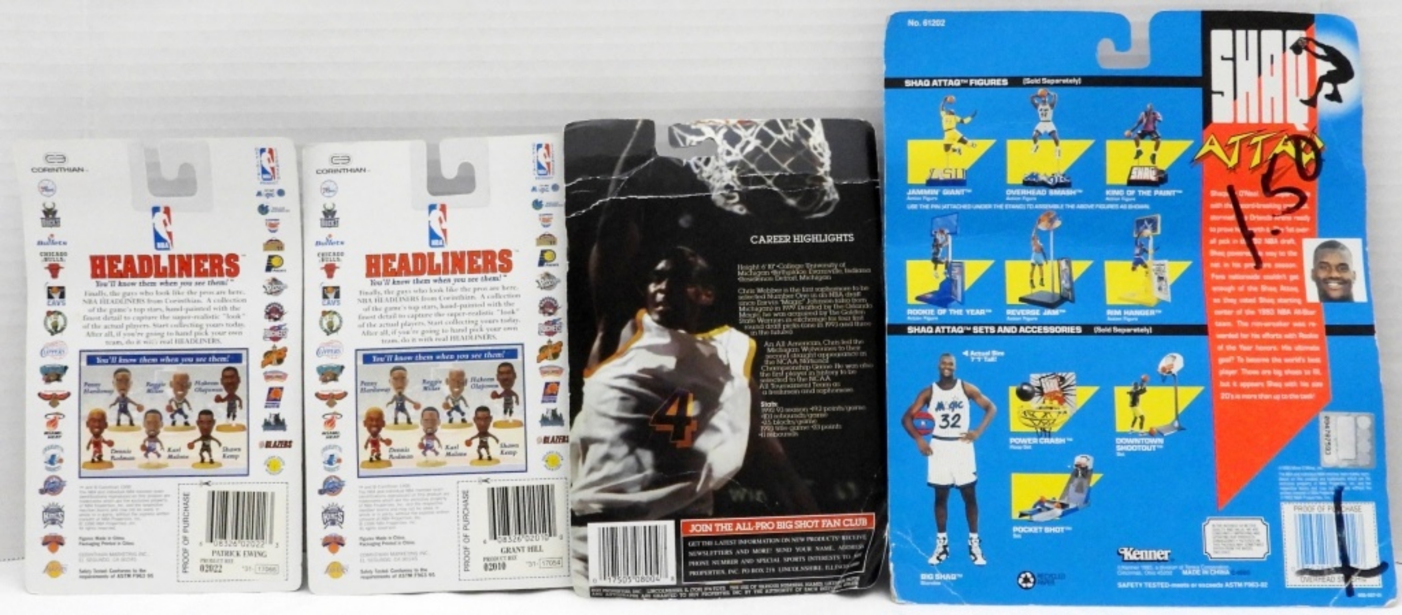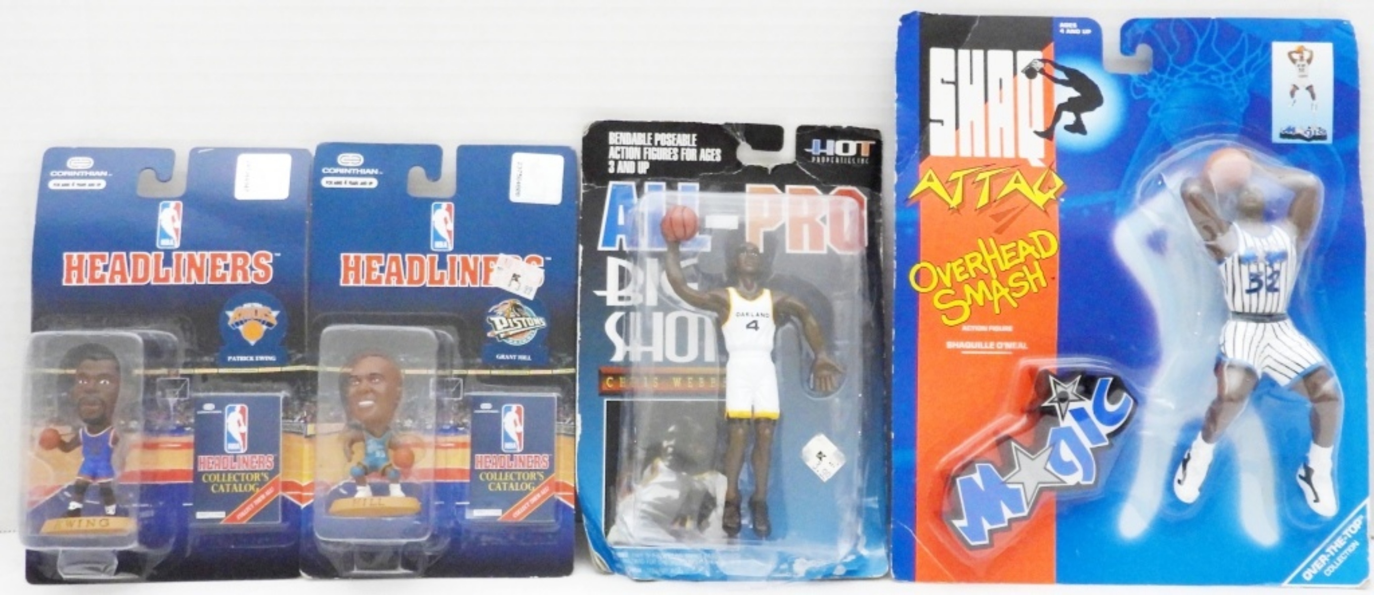 ALL SEALED BRAND NEW IN ORIGINAL BOXES; SHAQ ATTAQ OVERHEAD SMASH FIGURE, CHRIS WEBBER ALL-PRO BIG SHOT FIGURE, (2) HEADLINERS FIGURES: PATRICK EWING & GRANT HILL