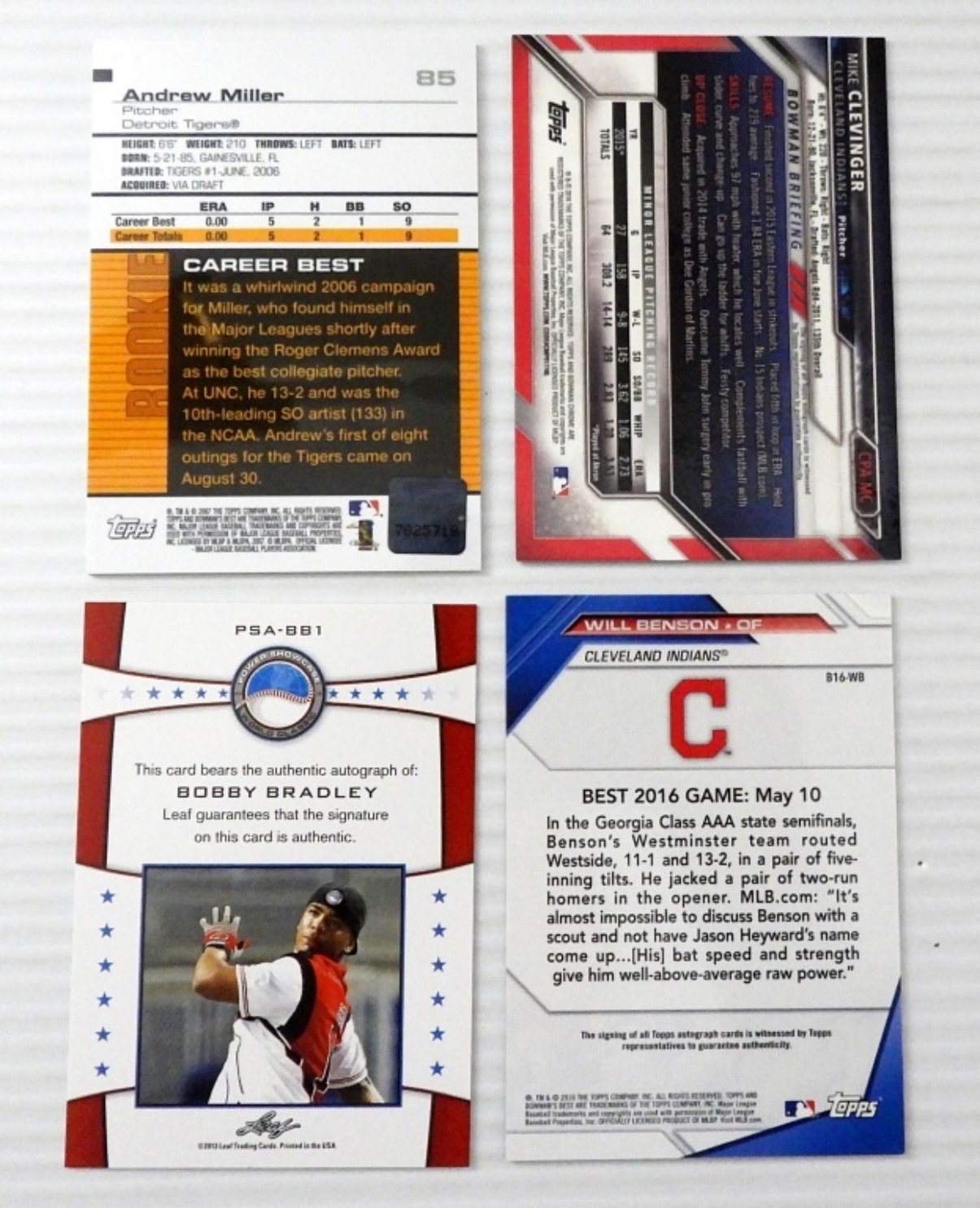 FACTORY ISSUED, SOME LIMITED EDITION, GREAT MIX, WILL BENSON, BOBBY BRADLEY, MIKE CLEVINGER, ANDREW MILLER